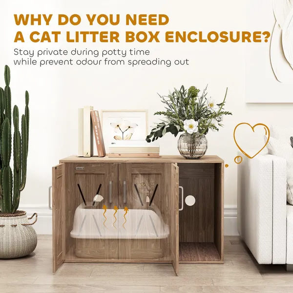 • - Dual-Function Design: Transform your cat's litter box into a chic addition to your home! This cat litter furniture doubles as a modern side table, suitable for displaying decor, books, or essentials while discreetly concealing the litter box