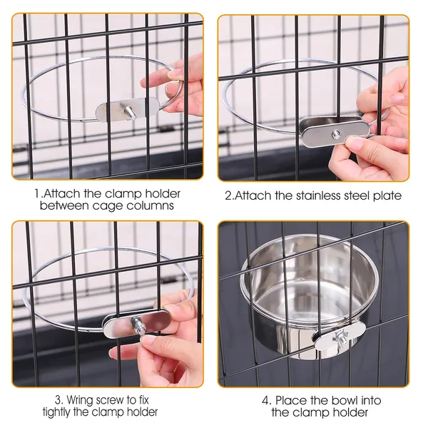 **EASY TO USE AND CLEAN*:The crate dog bowl is removable for easy cleaning; filling up with food or removal. Simply release the clamp holder; and remove the stainless steel bowl for cleaning.