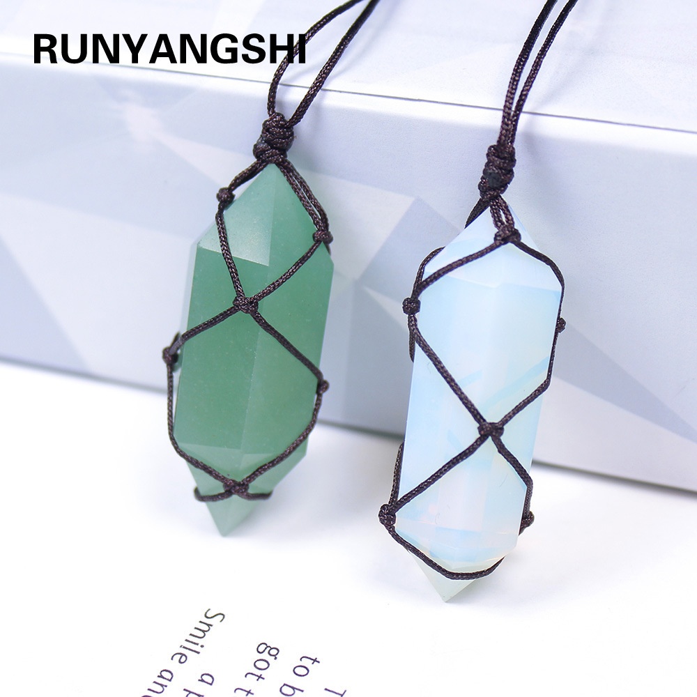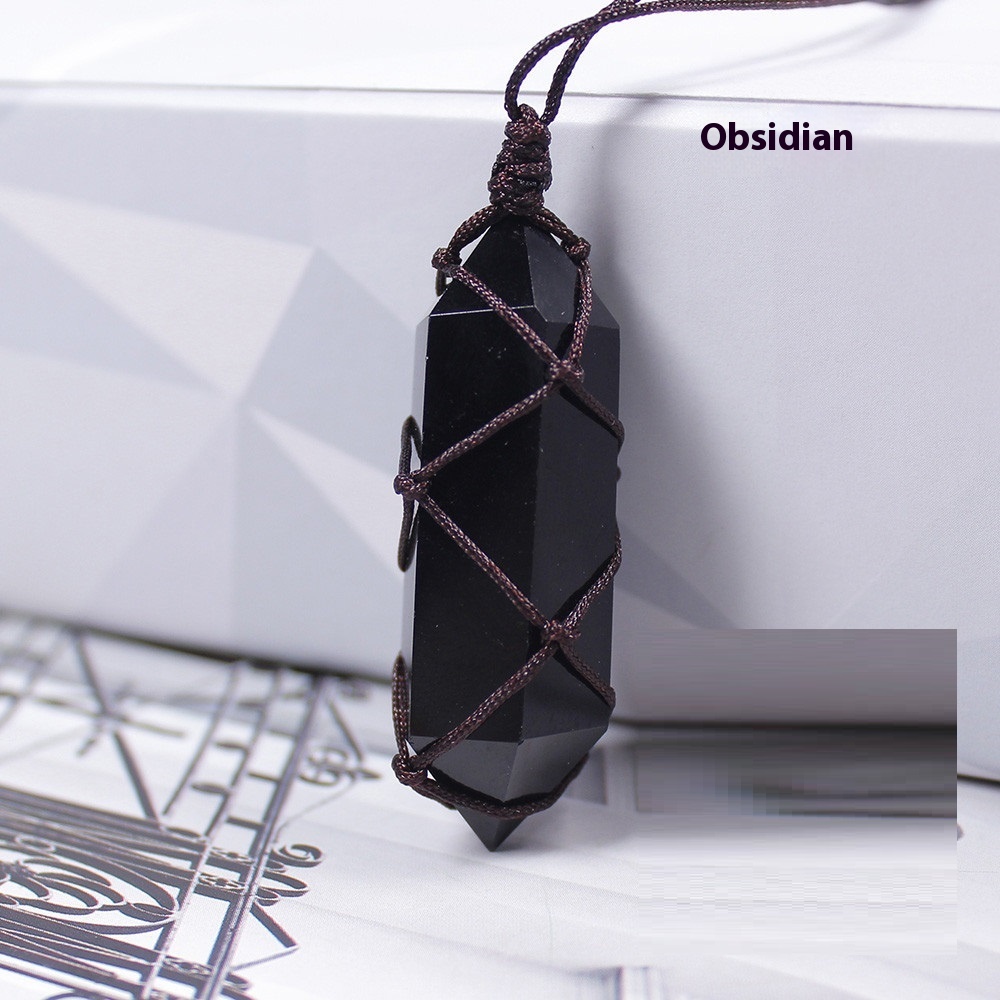 Size: citrine, blue melting, Obsidian (black stone), Opal, aventurine, White Crystal Black handmade rope