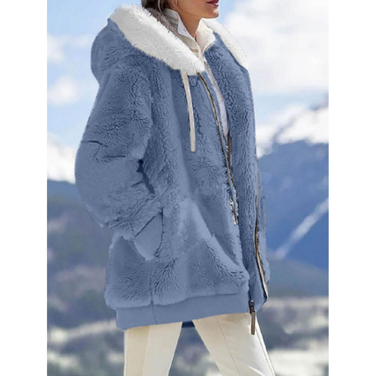 Fall And Winter Loose Plush Long Sleeves With Zippered Pockets And Hooded Warm Jacket