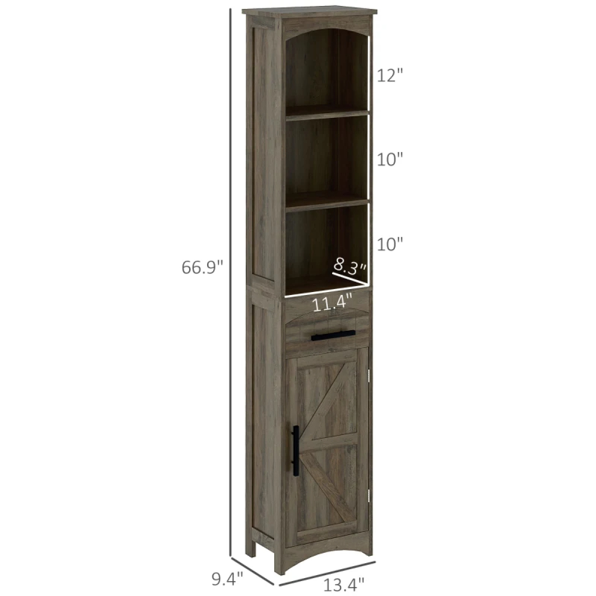 • - Overall Dimension: 13.4" L x 9.4" W x 66.9" H