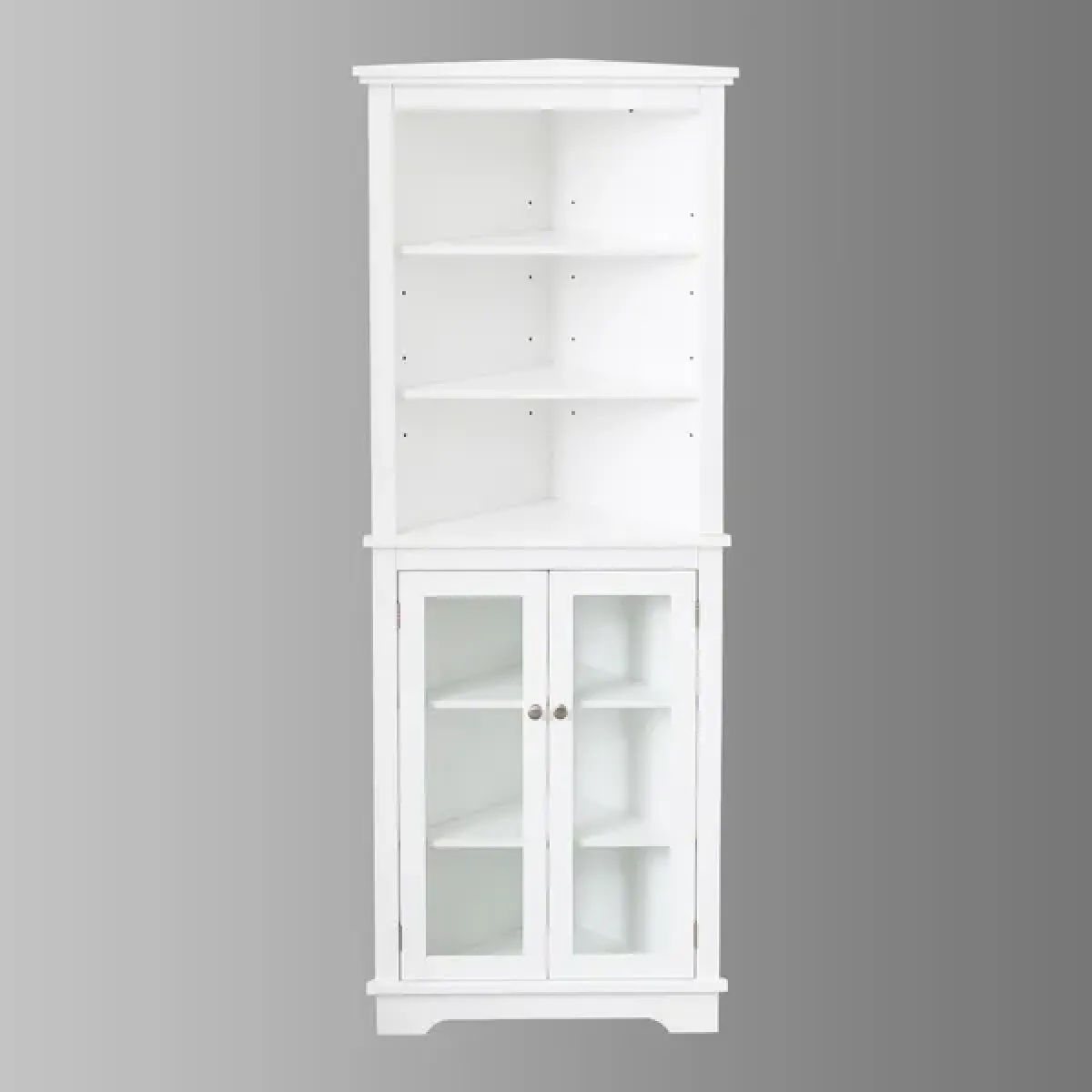 FRALIMK Matte White Tall Corner Storage Cabinet, Floor Storage Narrow Organizers With Double Glass Doors And Adjustable Shelves