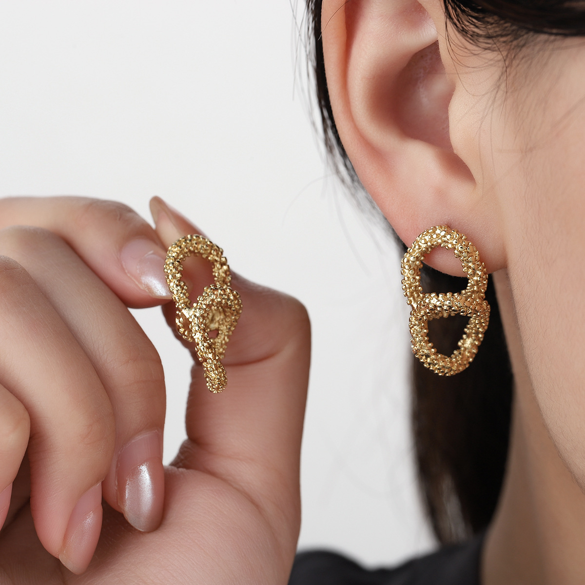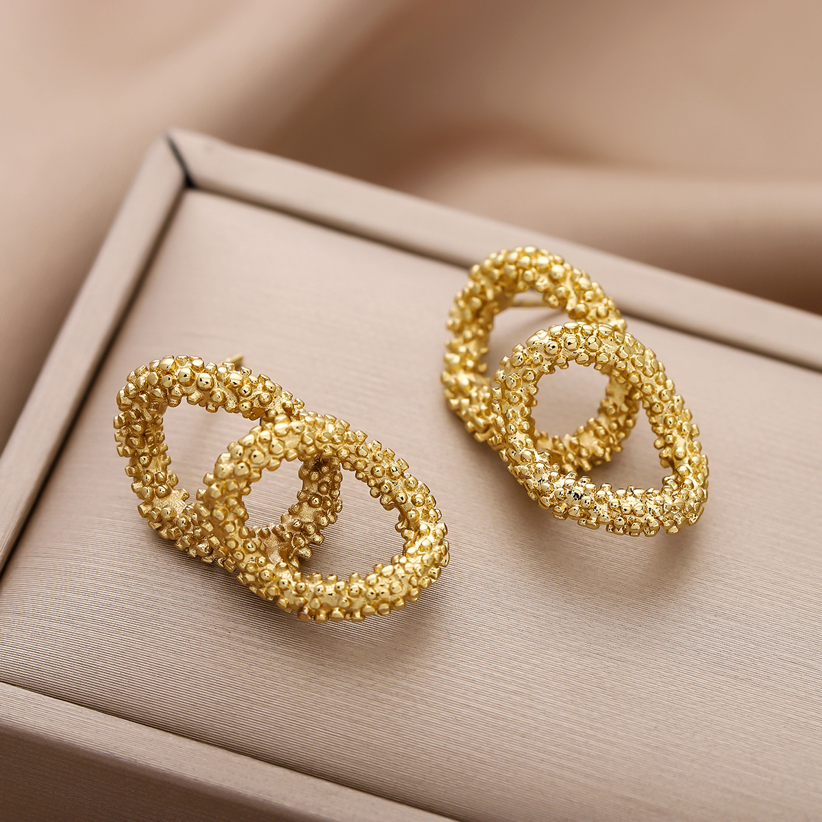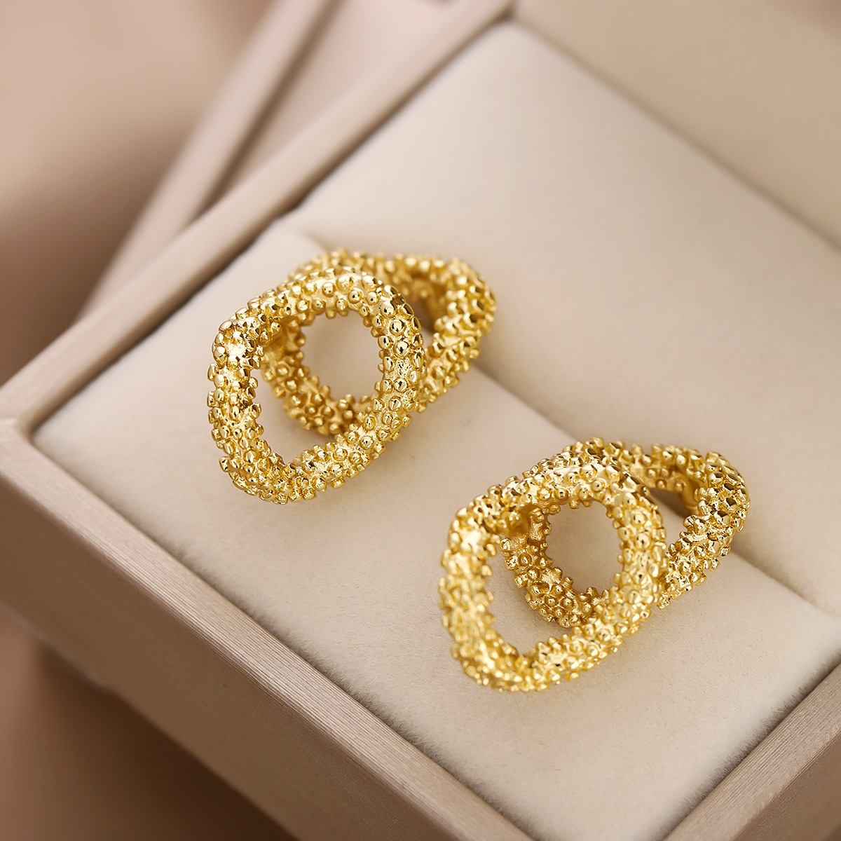 French Retro Frosted Hoop Earrings, Fashion Trendy Temperament Simple Studs, All-Match Geometric Vintage Jewelry