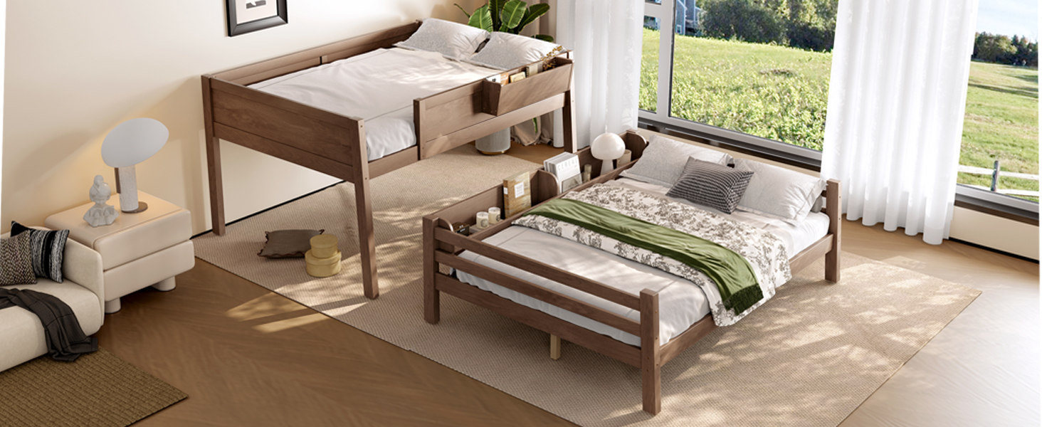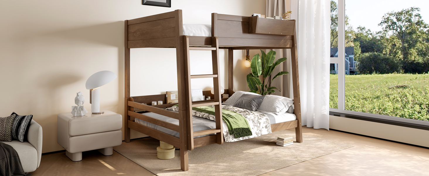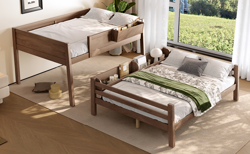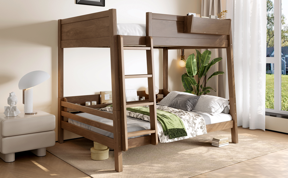 Product Name:Full Bunk Bed With Storage Shelf and Bookshelf,Wood Bunk Bed with Ladder and Guardrails,Detachable Design,Vintage Wood