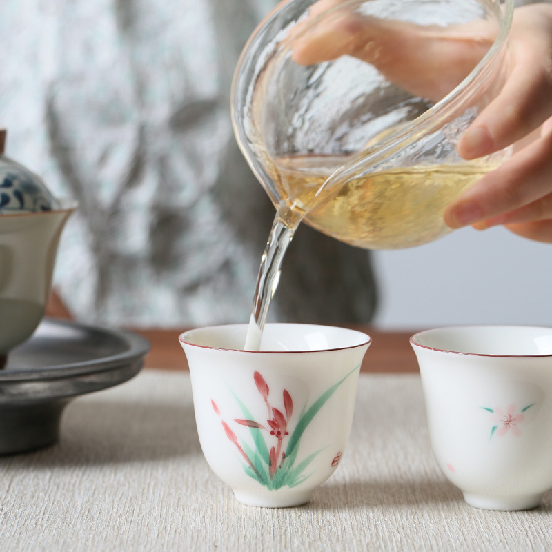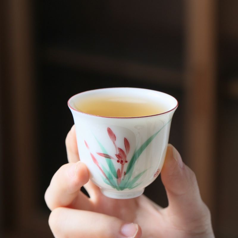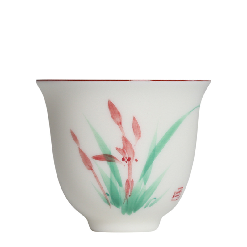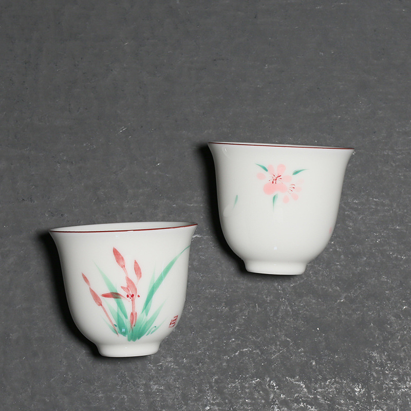 Hand Painted White Porcelain Orchid Tea Cup Chinese Underglaze Color Product