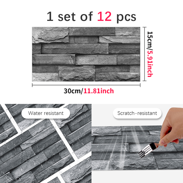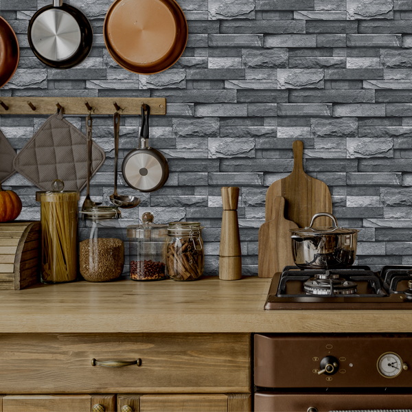 Imitation Stone Tile Light Grey Wallpaper Bathroom Waterproof Peel And Stick Wallpaper, Self-adhesive Design No Tools Required Easy To Install