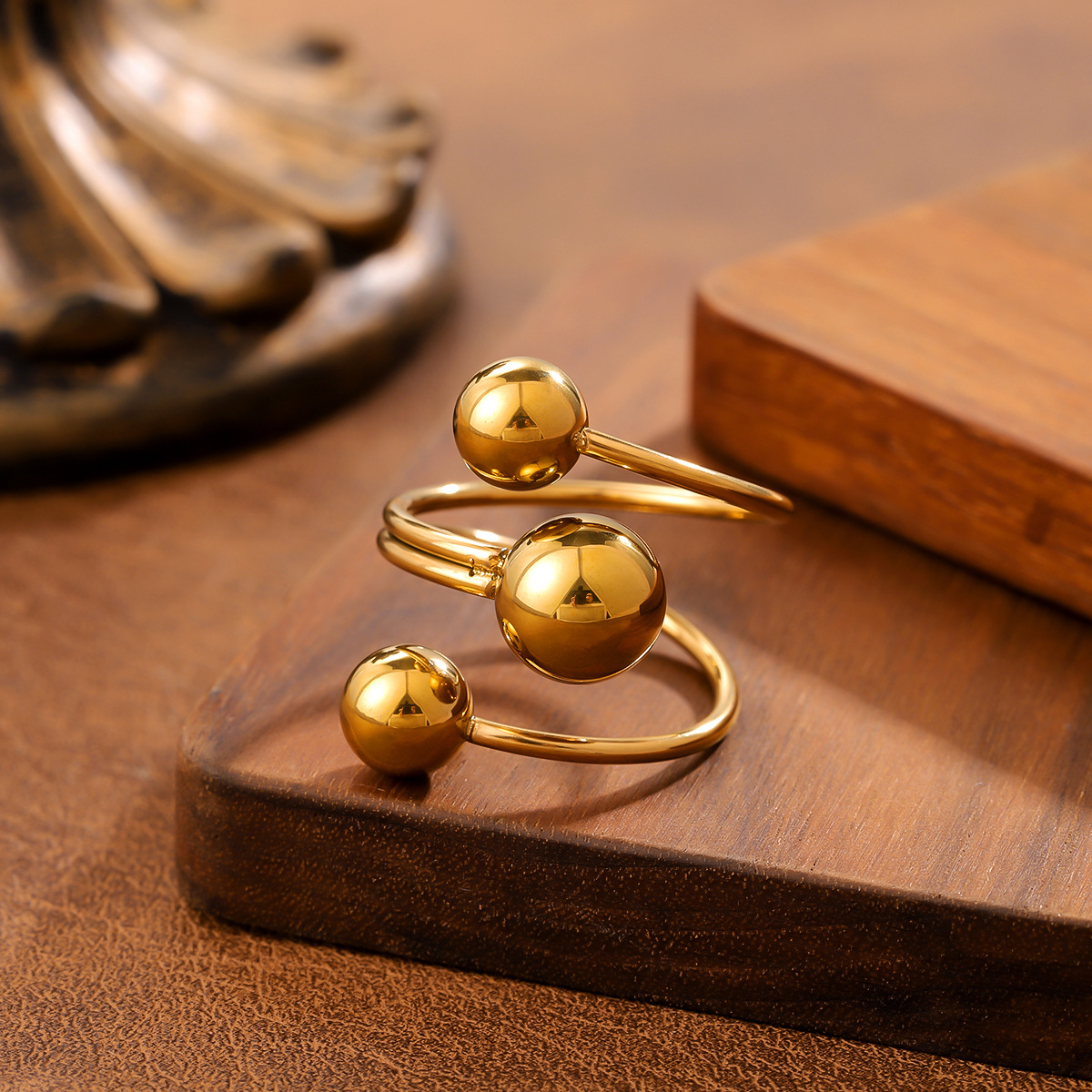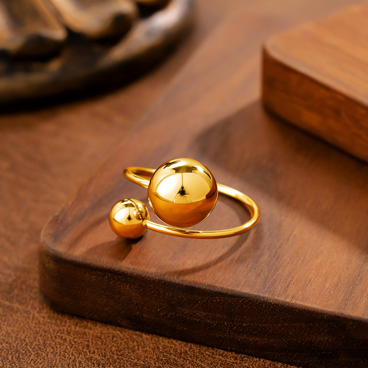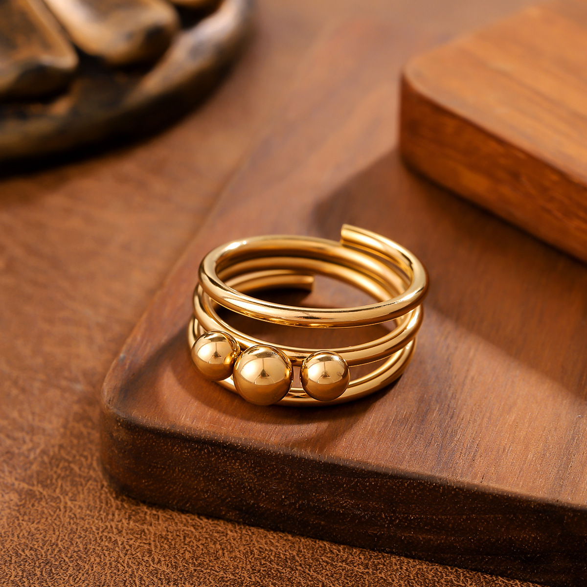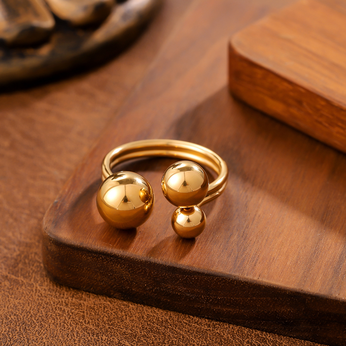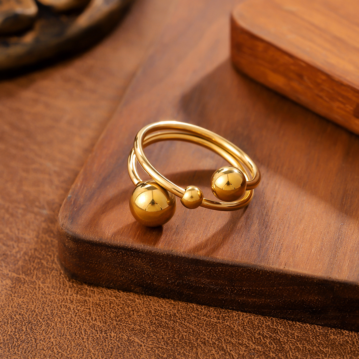 Ins Style Geometric Ball Titanium Steel Ring For Women, Minimalist Design, 18K Gold Plated, Anti-Fade Stainless Steel Adjustable Ring