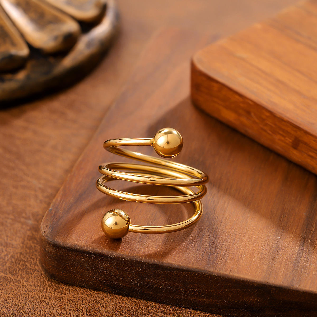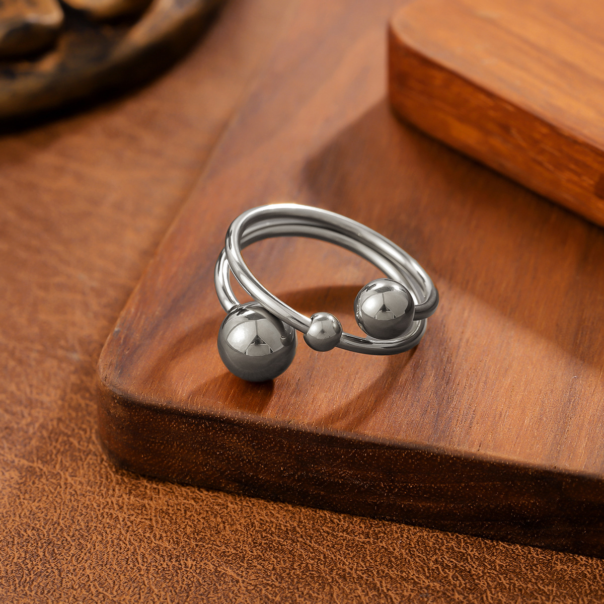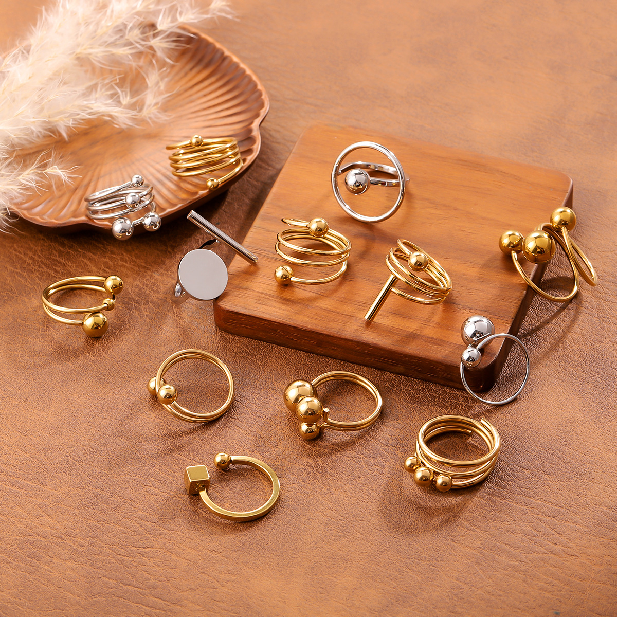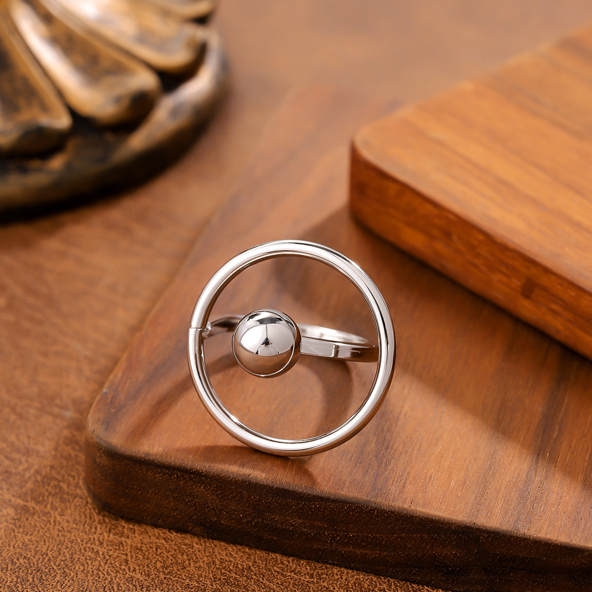 Ins Style Geometric Ball Titanium Steel Ring For Women, Minimalist Design, 18K Gold Plated, Anti-Fade Stainless Steel Adjustable Ring