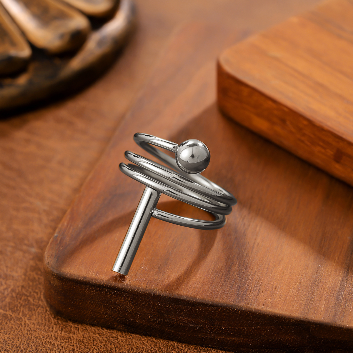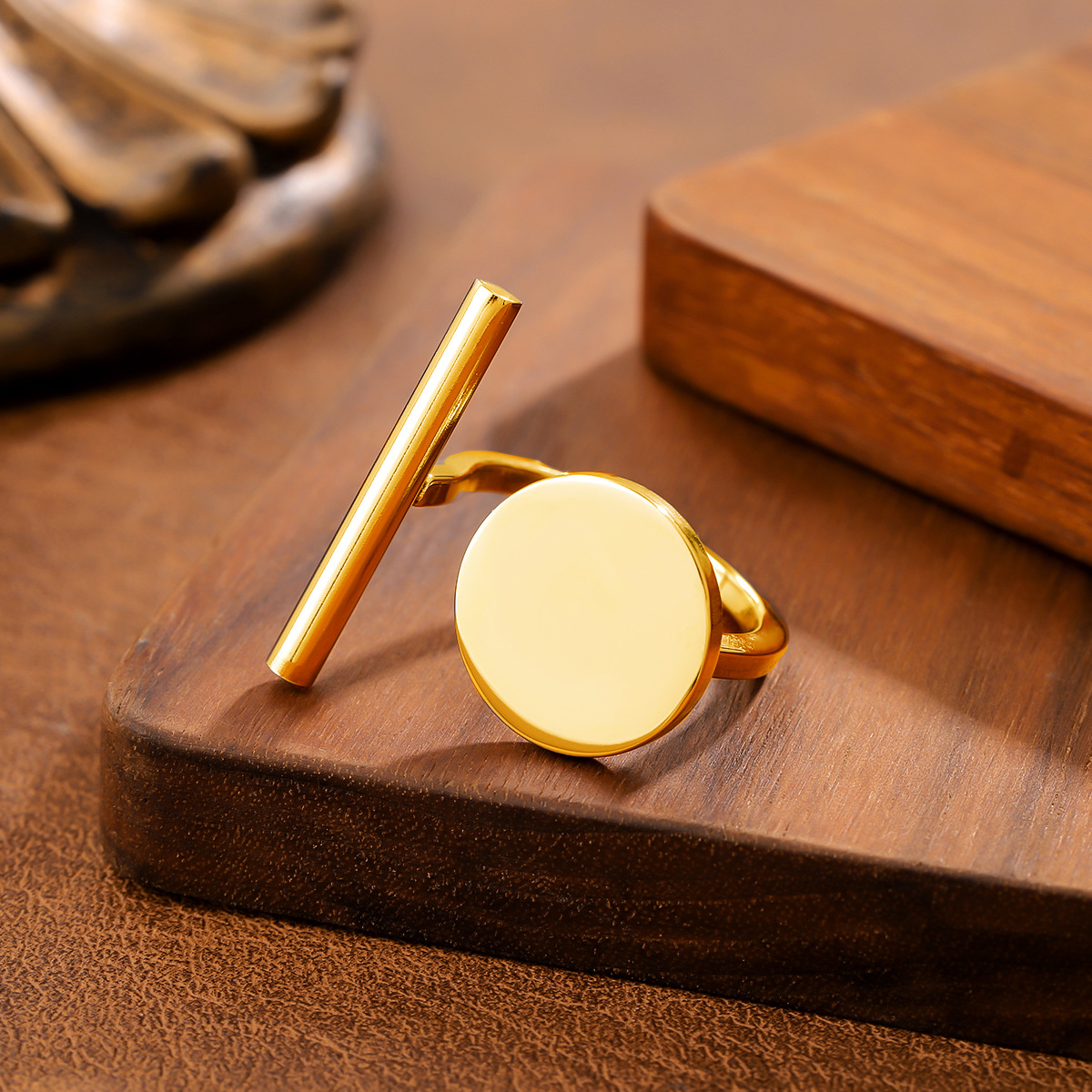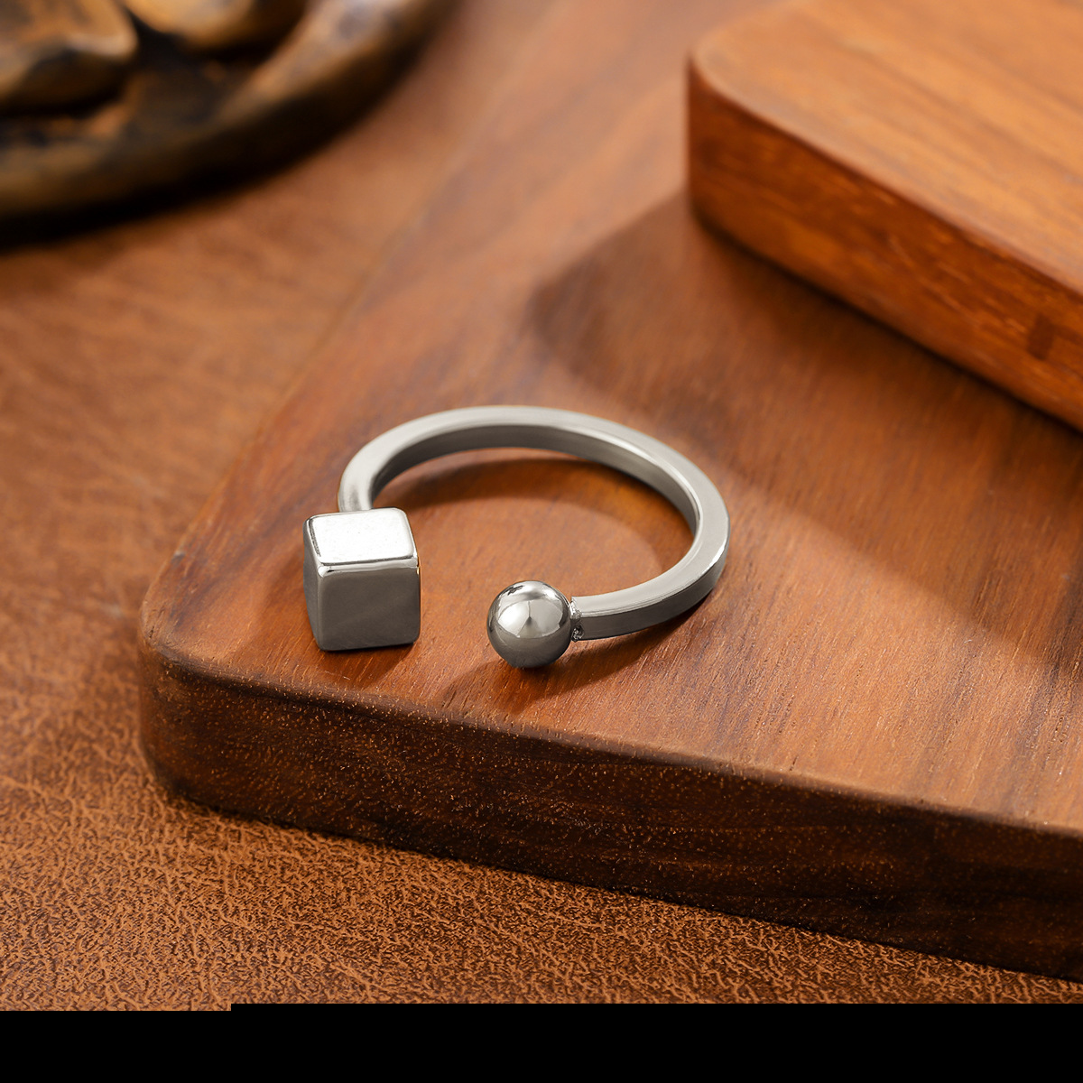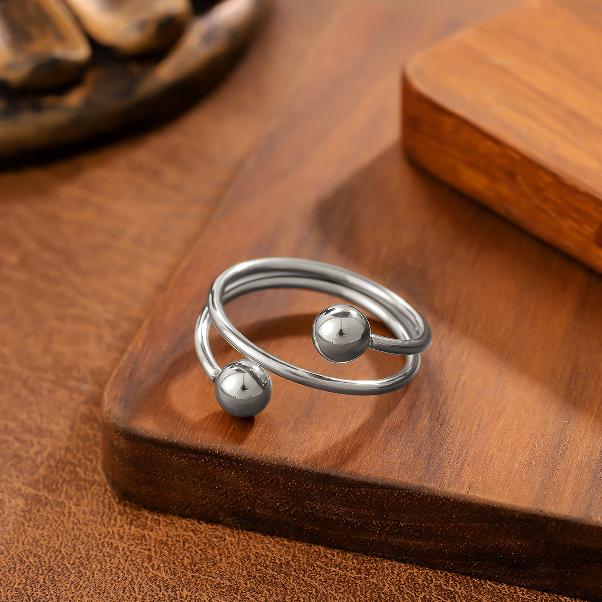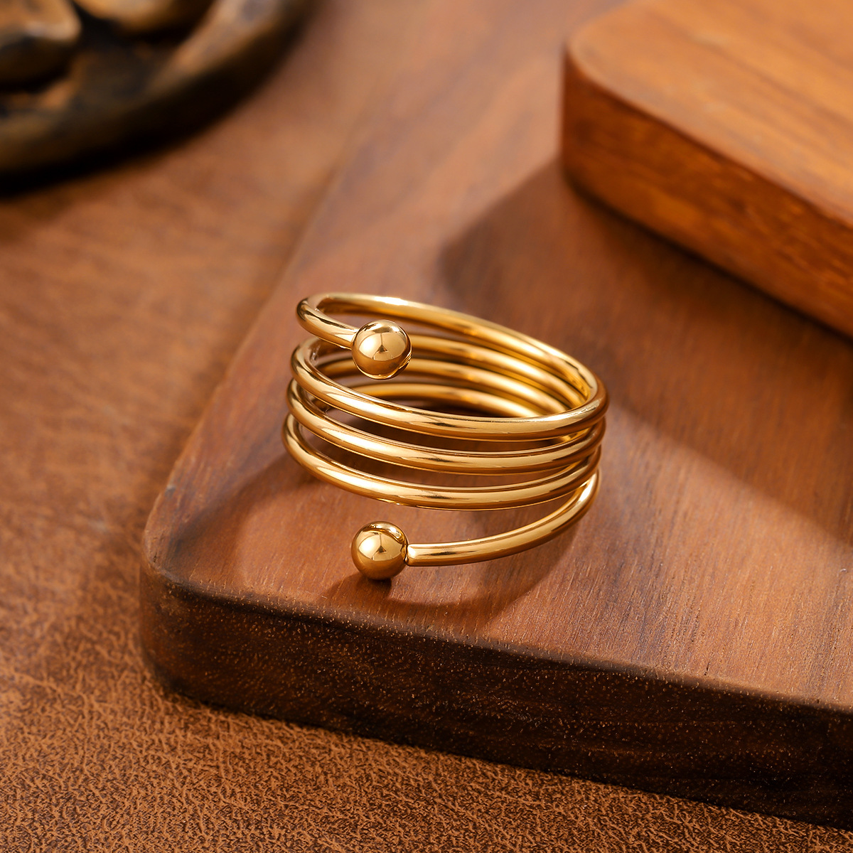 Ins Style Geometric Ball Titanium Steel Ring For Women, Minimalist Design, 18K Gold Plated, Anti-Fade Stainless Steel Adjustable Ring
