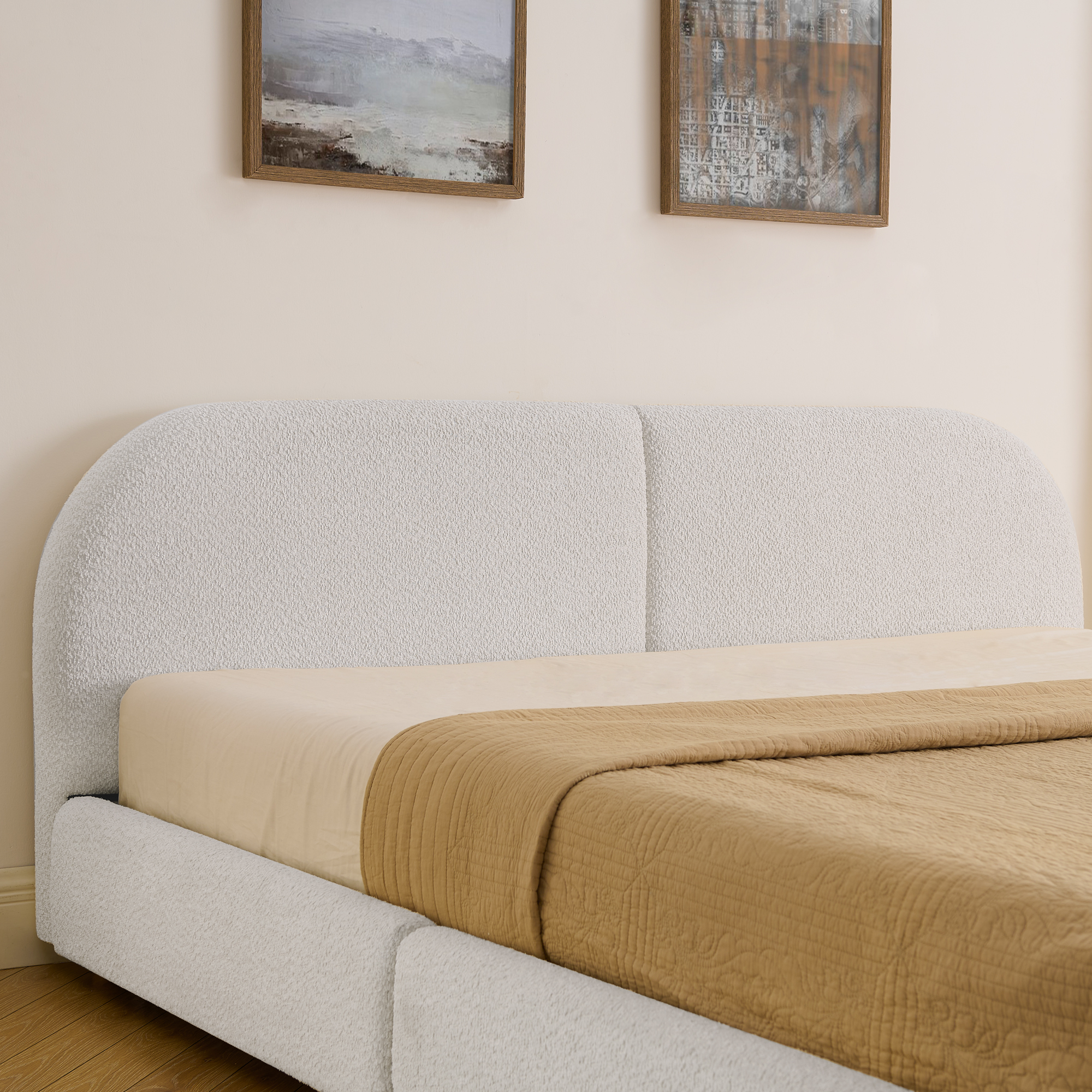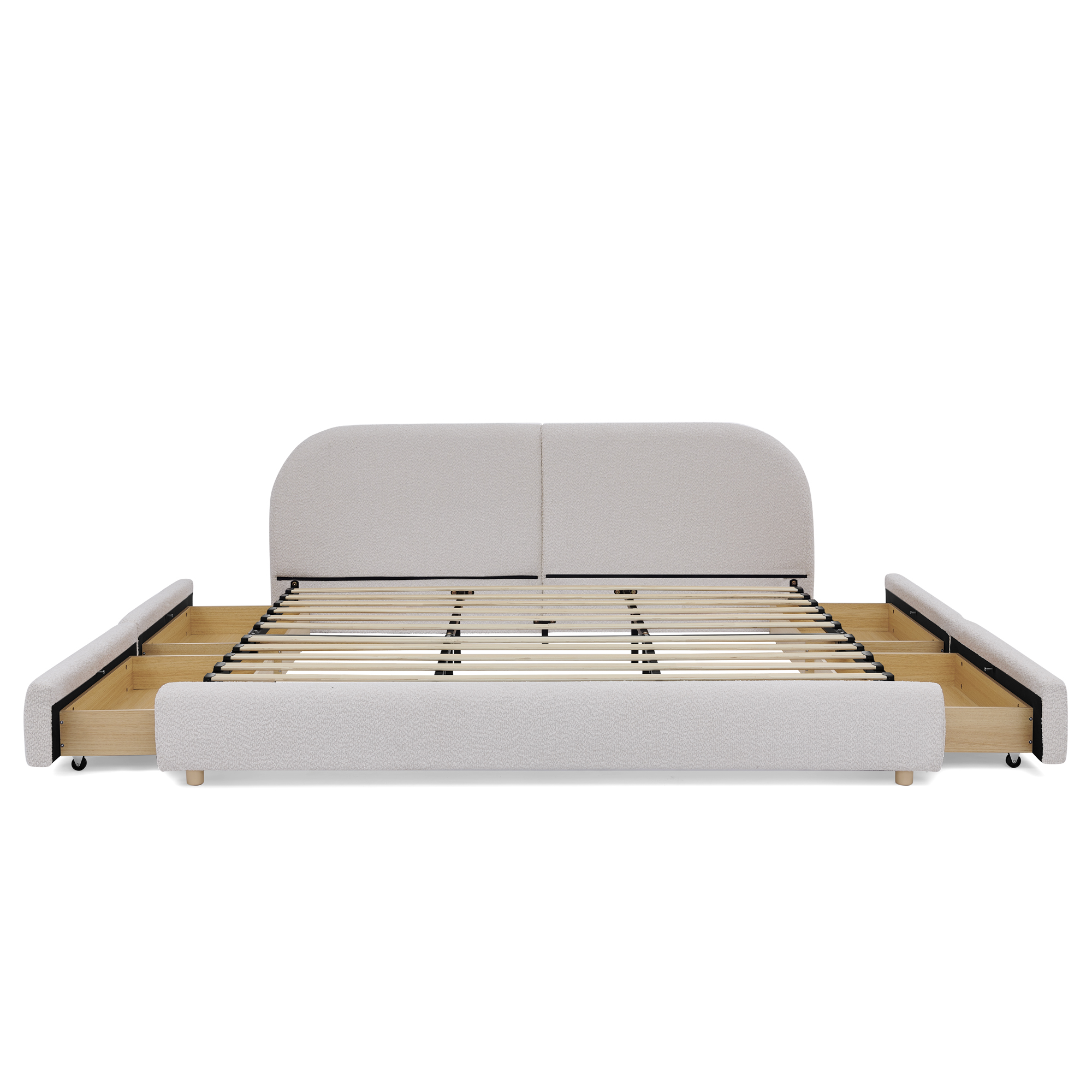 Product Name:King Size Upholstered Bed Frame Modern Minimalist Style - Circle Yarn Fabric, Tall Curved Headboard, Sturdy Leg Support & Wheeled Drawer Storage, Mattress Not Included -Beige