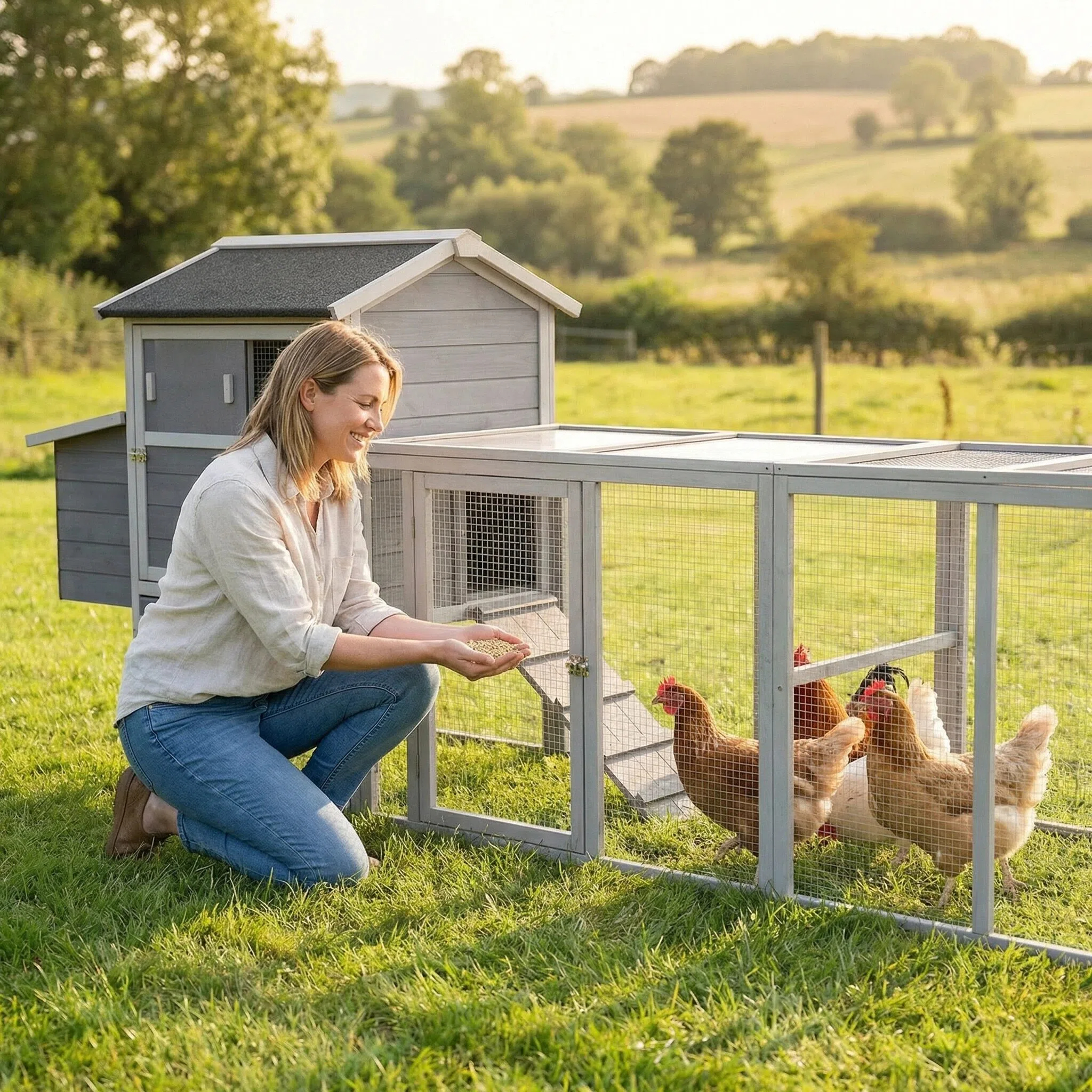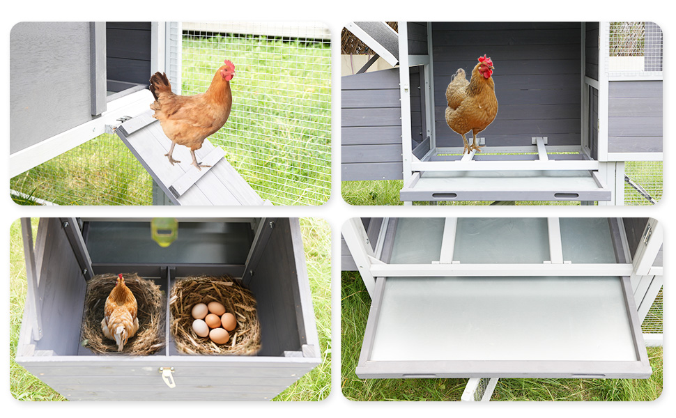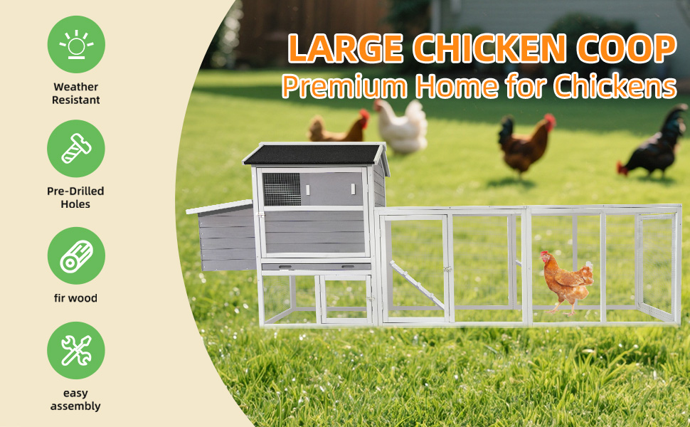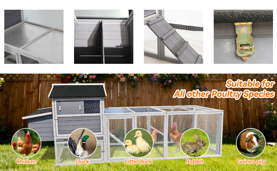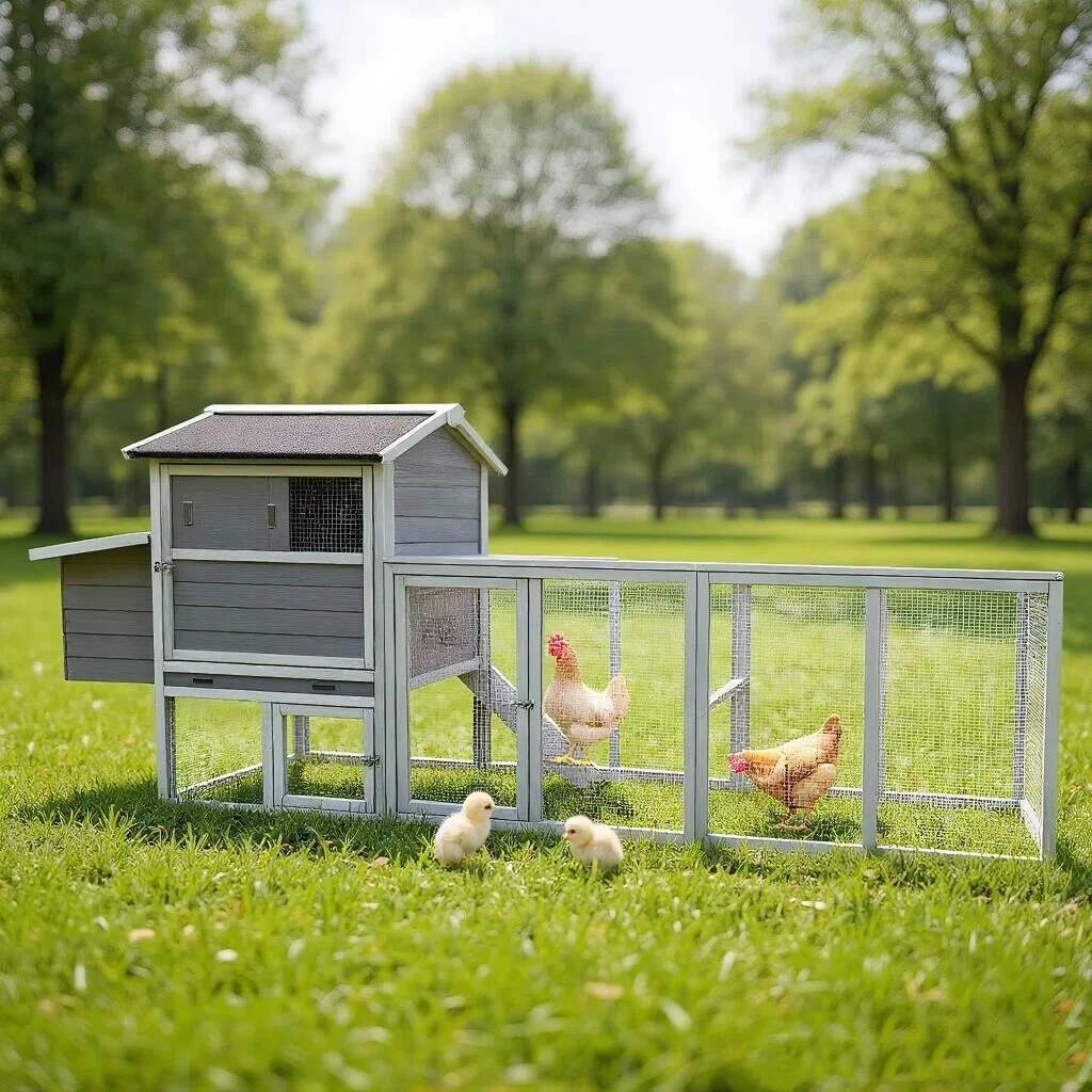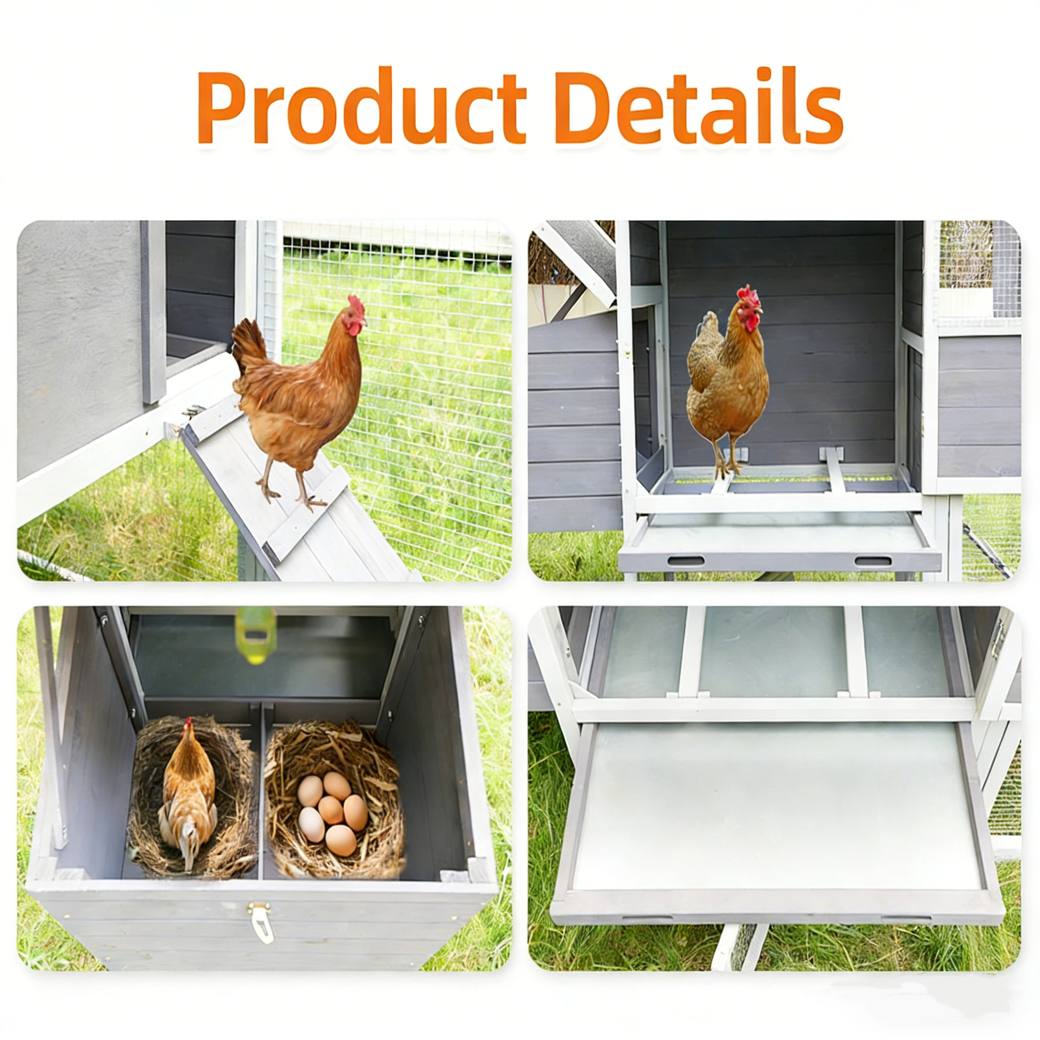 Product Name:large main house, Gray Wooden Chicken Coop, Large Outdoor Hen House with Run and Nesting Box Poultry Cage, Rabbit Hutch, Waterproof Anti-UV Panel for Backyard
