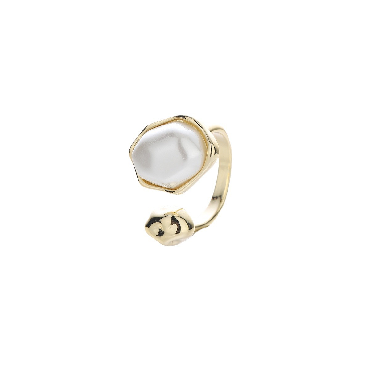 Light Luxury Baroque Pearl Ring, Minimalist Design For Women, Adjustable Open Band, Geometric Index Finger Jewelry