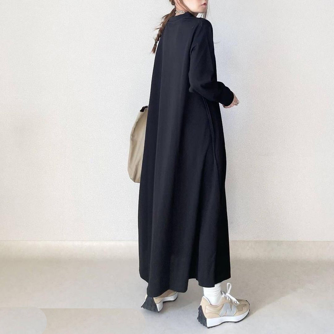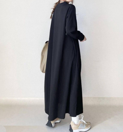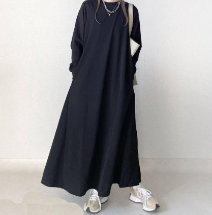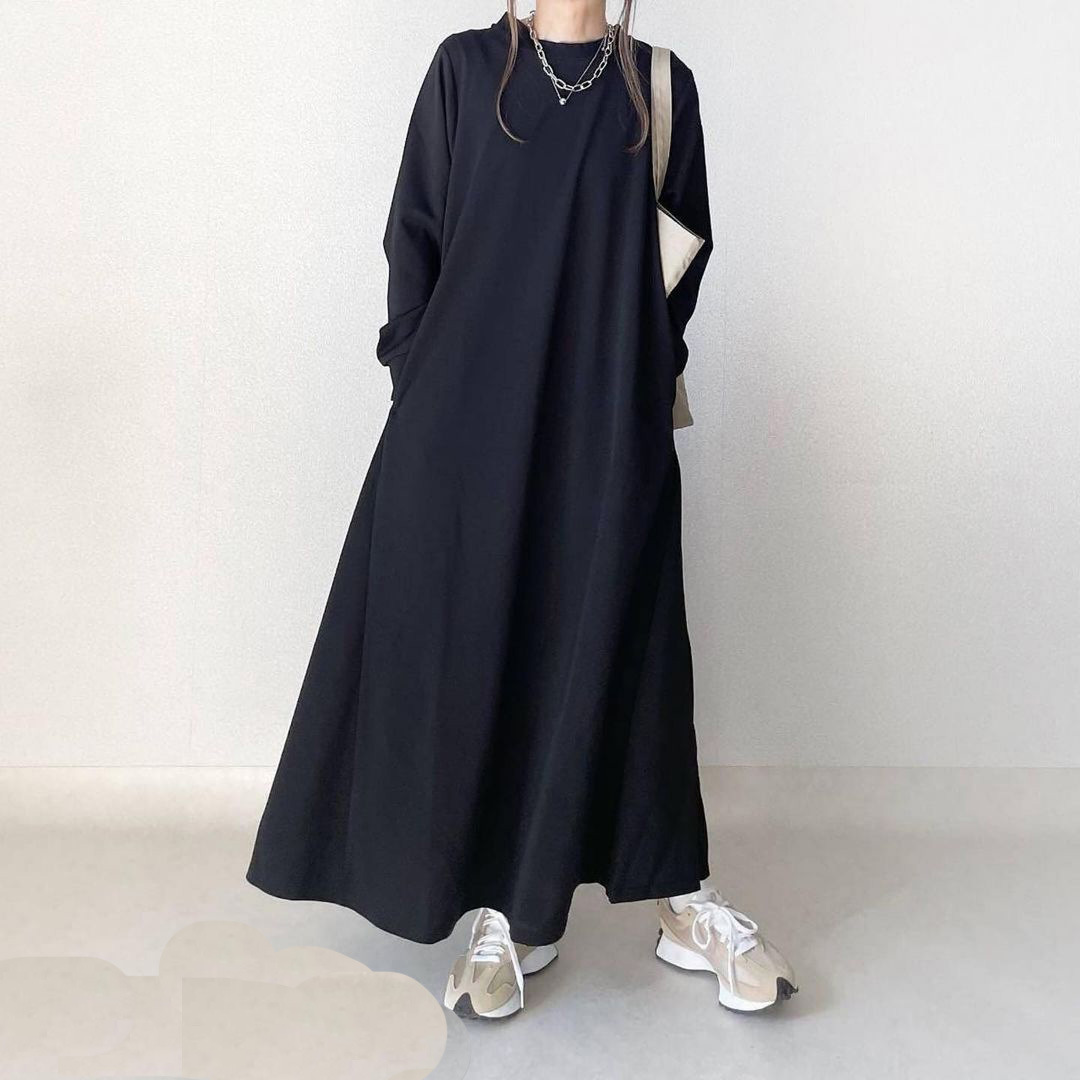 Loose Slimming Round Neck Pouch Long Sleeve Dress Women