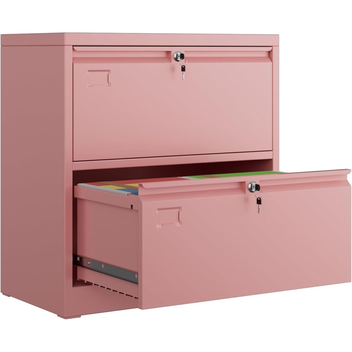 Metal 2 Drawer Lateral File Cabinet With 2 Lock - Wide Filing Cabinet For Letter Legal F4 A4 Hanging Files - Includes Business Card Holder,Home Office School Storage,Pink