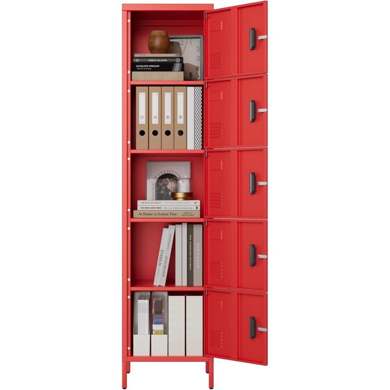 Metal Locker With Lock And Ventilation Holes,Metal Storage Locker With Business Card Slof For Home,Gym,Garage,School,Office,Assembly Required,Red