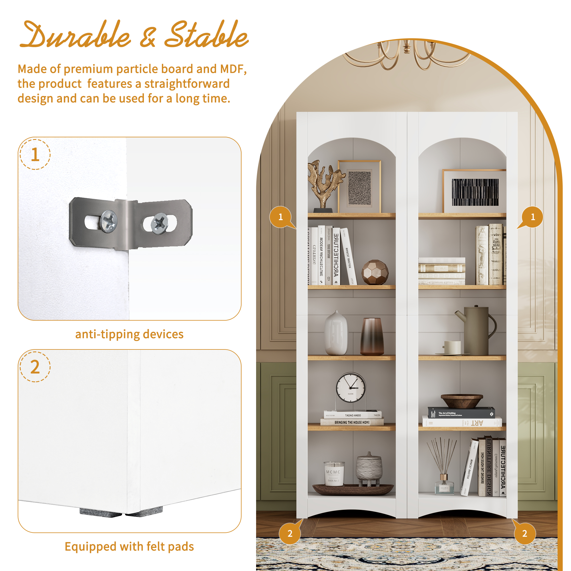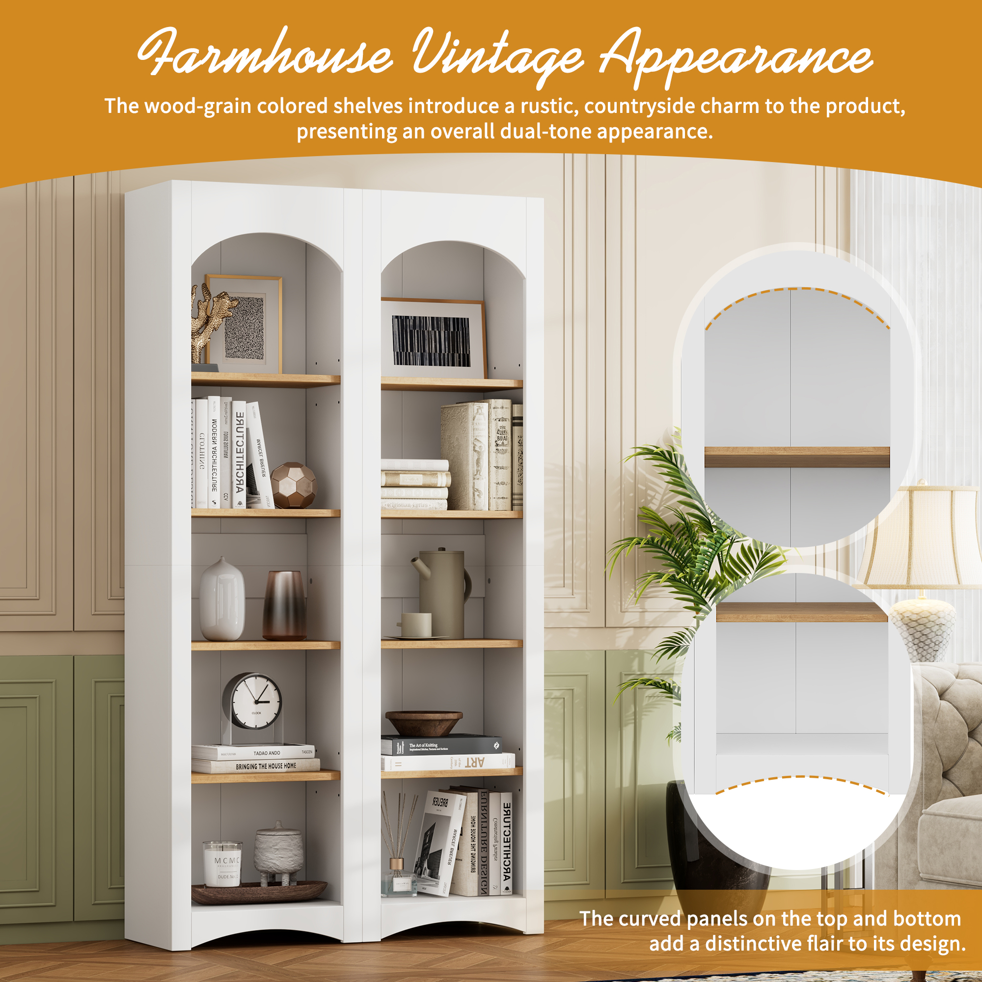 Product Name:ON-TREND Free Standing 5 Tier Bookshelves, Bookcases Set of 2, Farmhouse Two-Tone Storage Cabinet with Adjustable Shelves, Modern 72"H Kitchen Pantry Cabinet for Living Room, Home Office, White