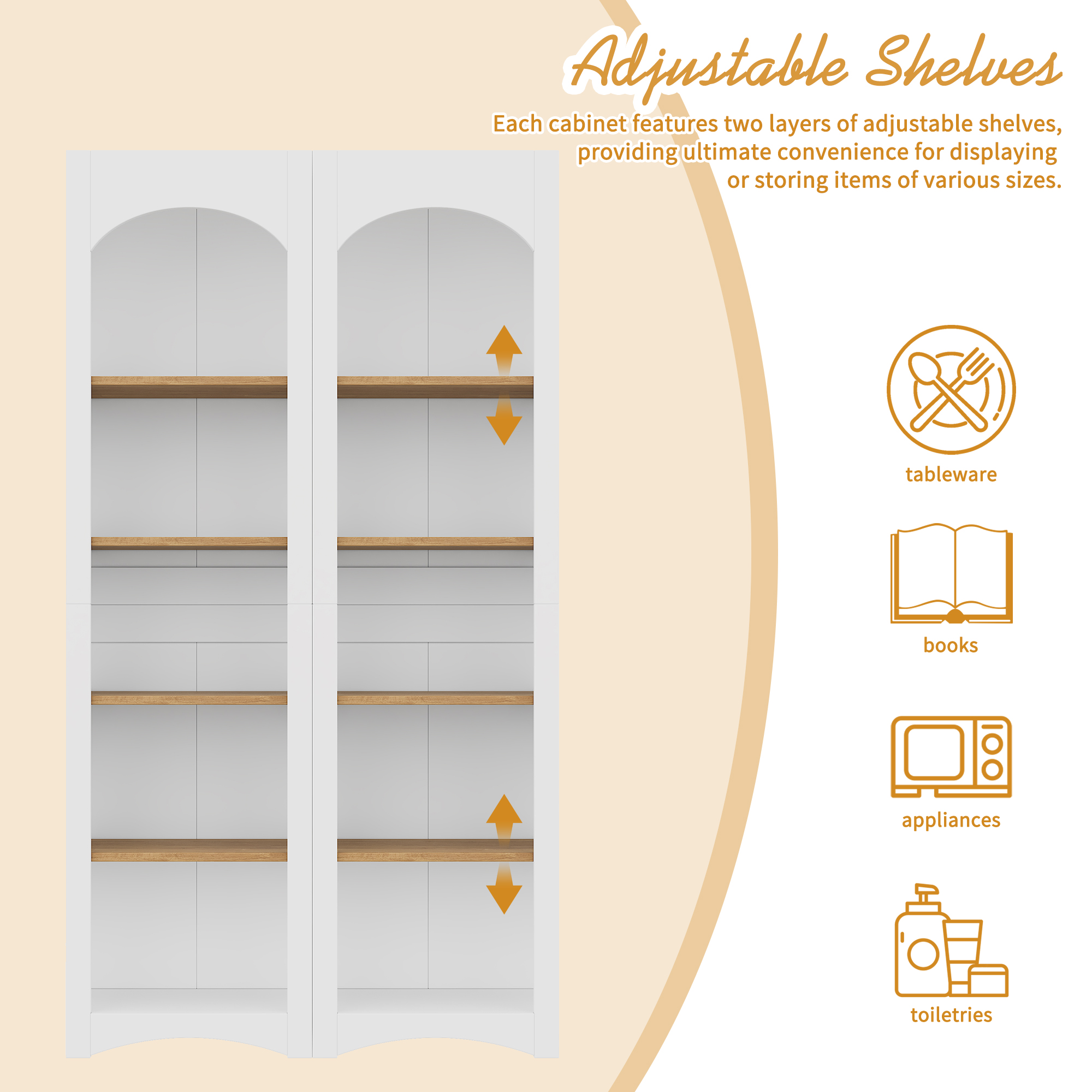 Each cabinet features two layers of adjustable shelves, providing ultimate convenience for displaying or storing items of various sizes. The open-space design allows you to keep your belongings easily accessible. You can use to accommodate tableware, books, appliances, toiletries, or others.