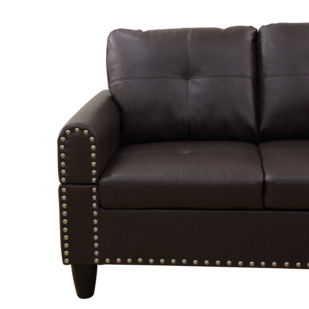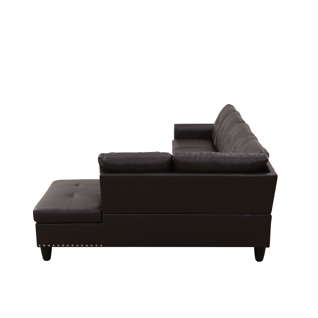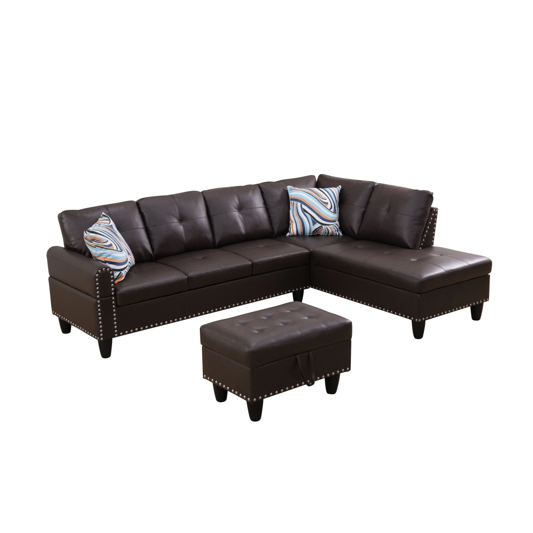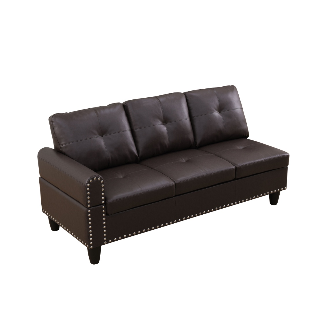 | CHARACTERISTIC | a. The sofa (Brown) with decorative copper nails, made of nickel plating, with stronge sense of elegance. b. The ottoman with storage function, can store small items for daily use, which is flexible and convenient c. The middle of sofa with reversible coffee table, stretched been coffee table, closed been normal sofa; The cup-holder with drinks settlement function, which is convenient and flexible d. The sofa and chaise can be splited, free combination can meet the demand for usage in different situations |