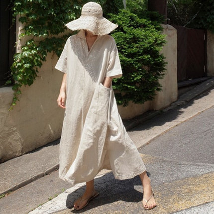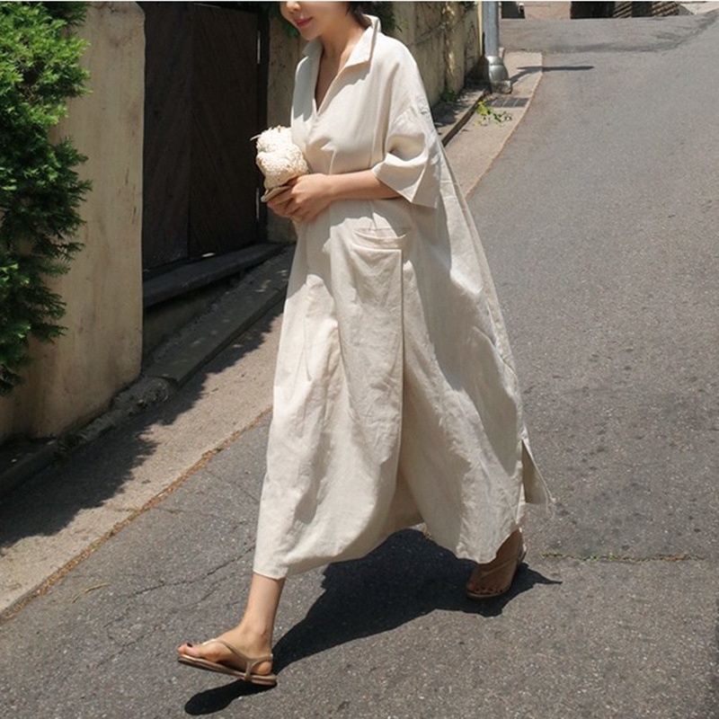 Overknee Long Korean Style Loose Linen Shirt Skirt