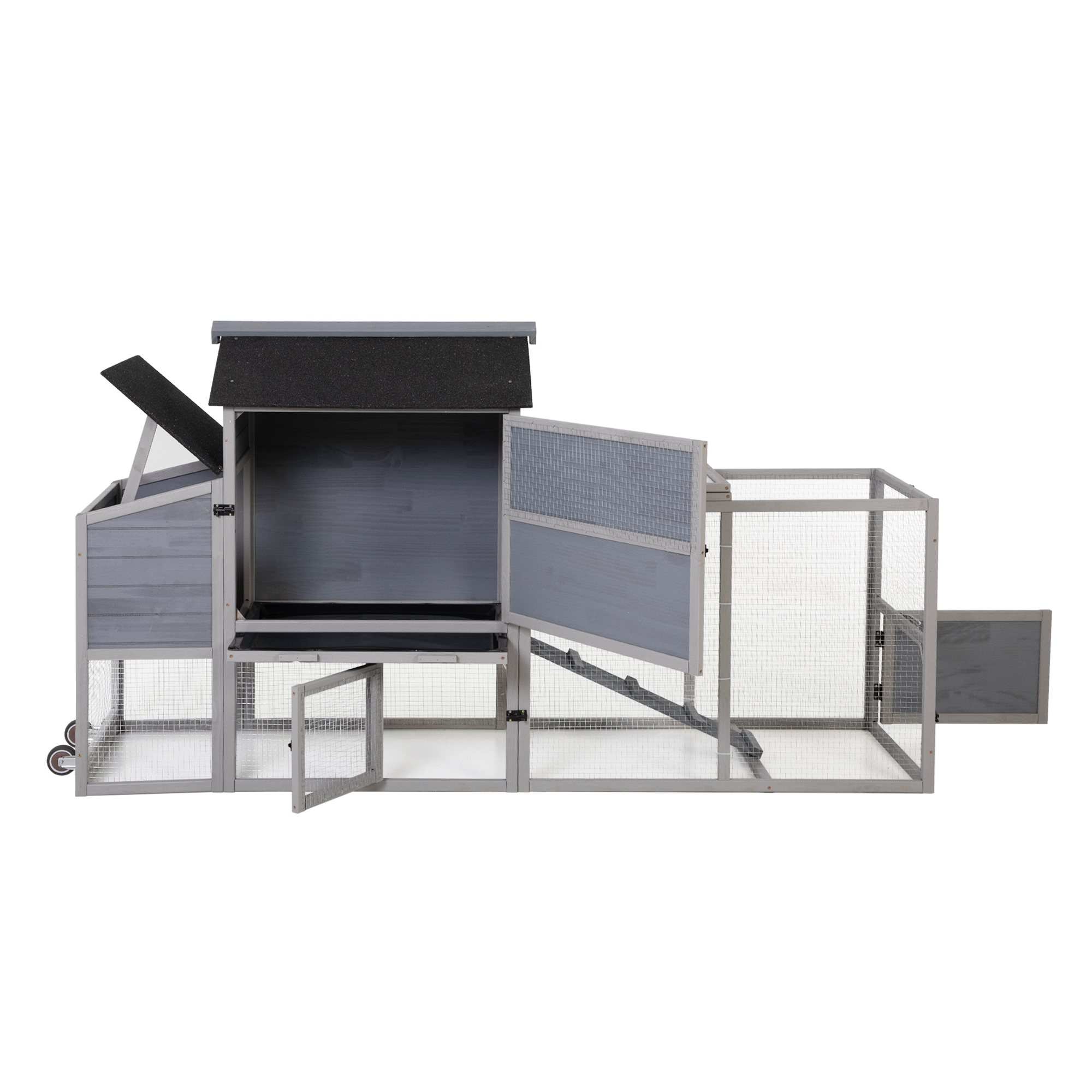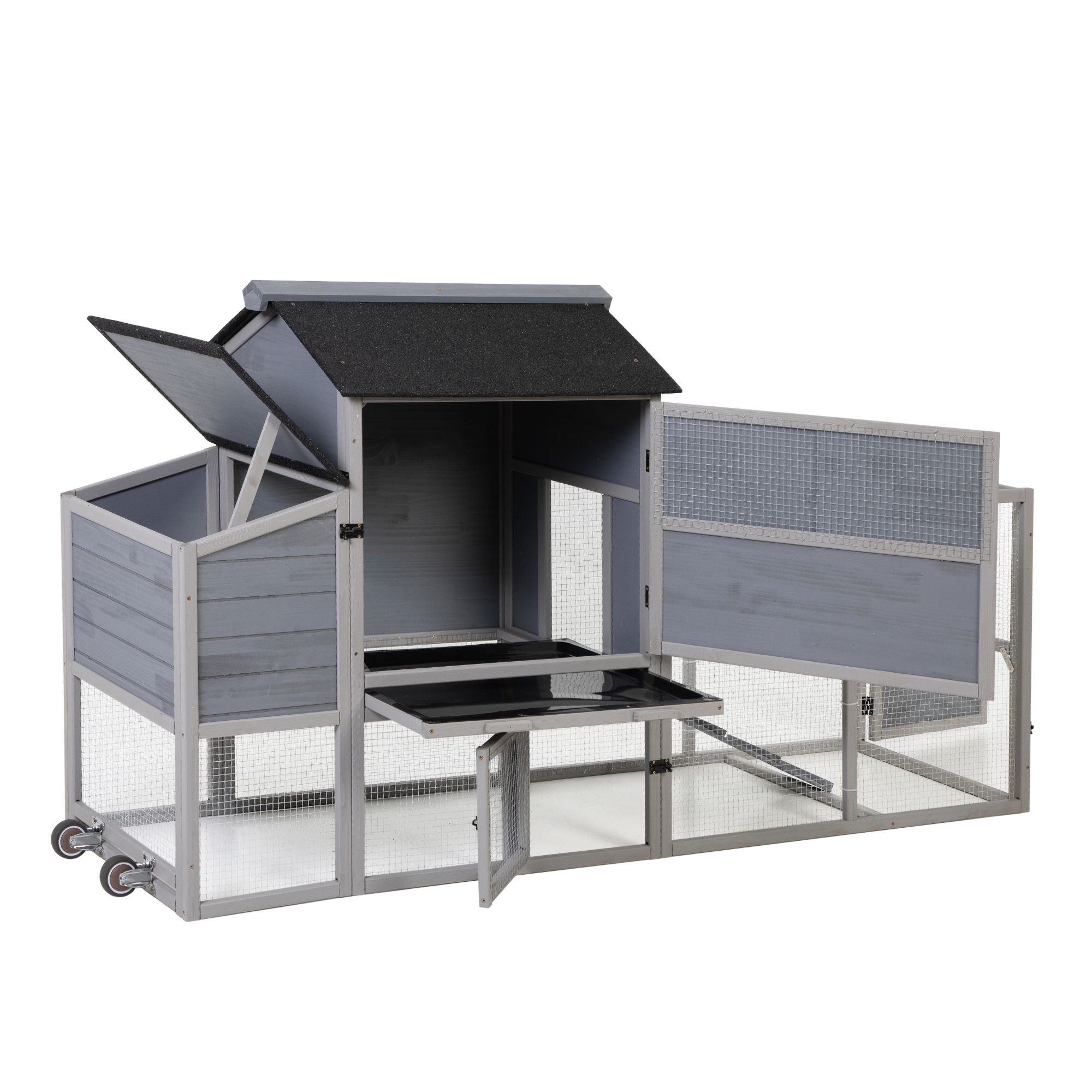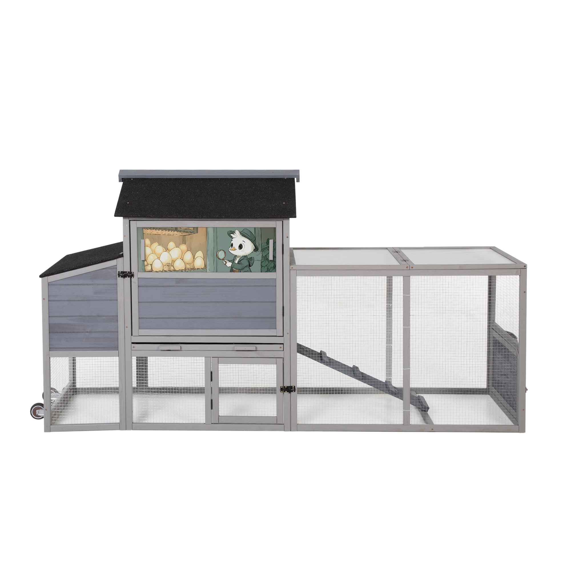Product Name:Portable Mobile Chicken Coop with Nesting Box, Sleeping Room, Run, Window, Sun Board, Doors, Pull-Out Tray, Wheels, Outdoor Backyard Pen for Small Animals, Gray with Colorful Patterns