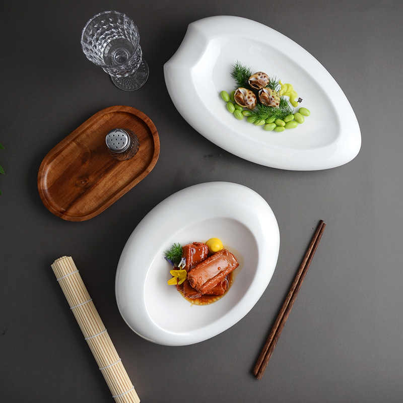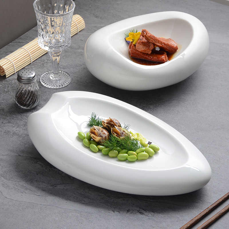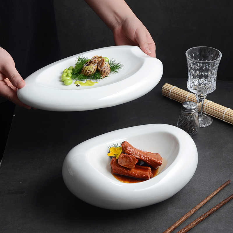 Pure White Ceramic Irregular Artistic Cuisine Plate