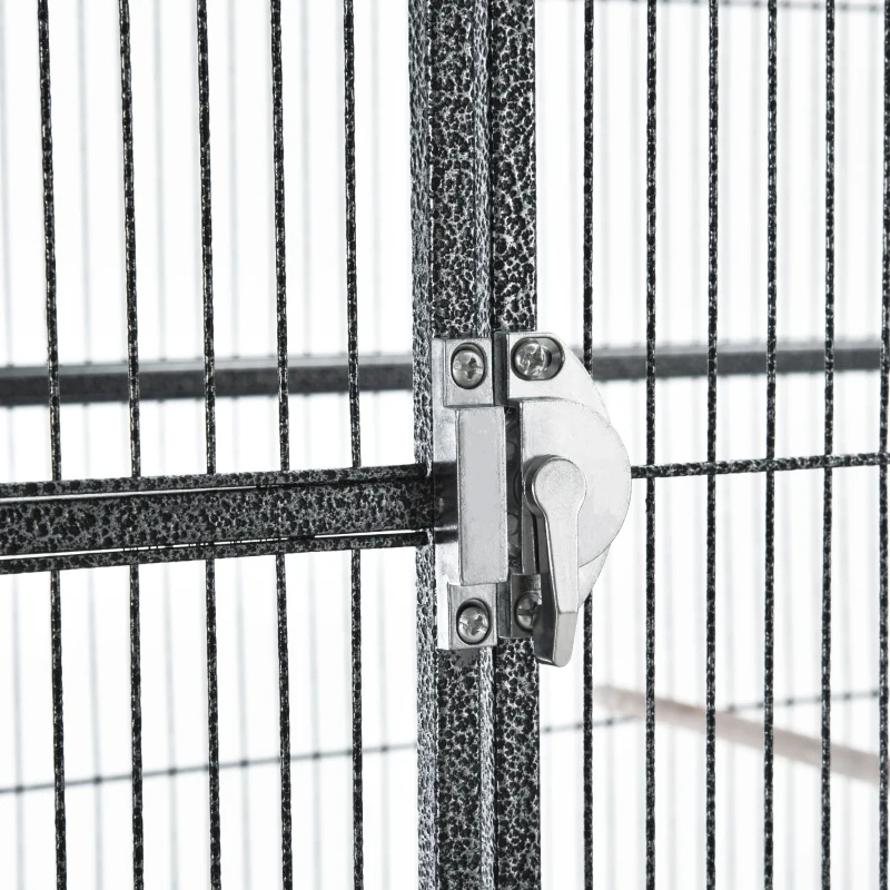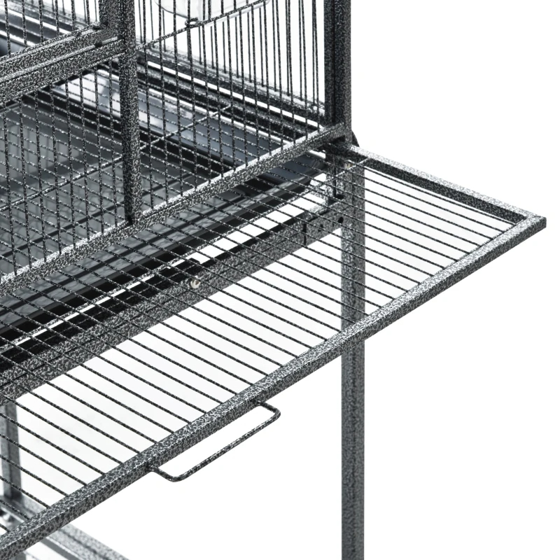 Rolling Metal Bird Cage Feeder With Detachable Rolling Stand, Storage Shelf, Wood Perch & Food Container