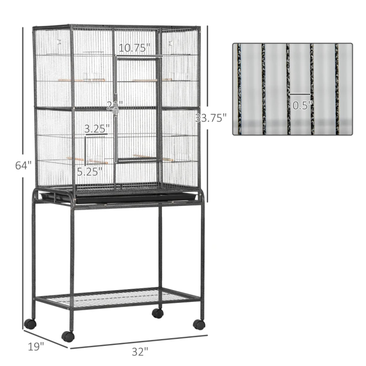 - Bird Cage Dimensions: 30" L x 18.25" W x 33.75" H