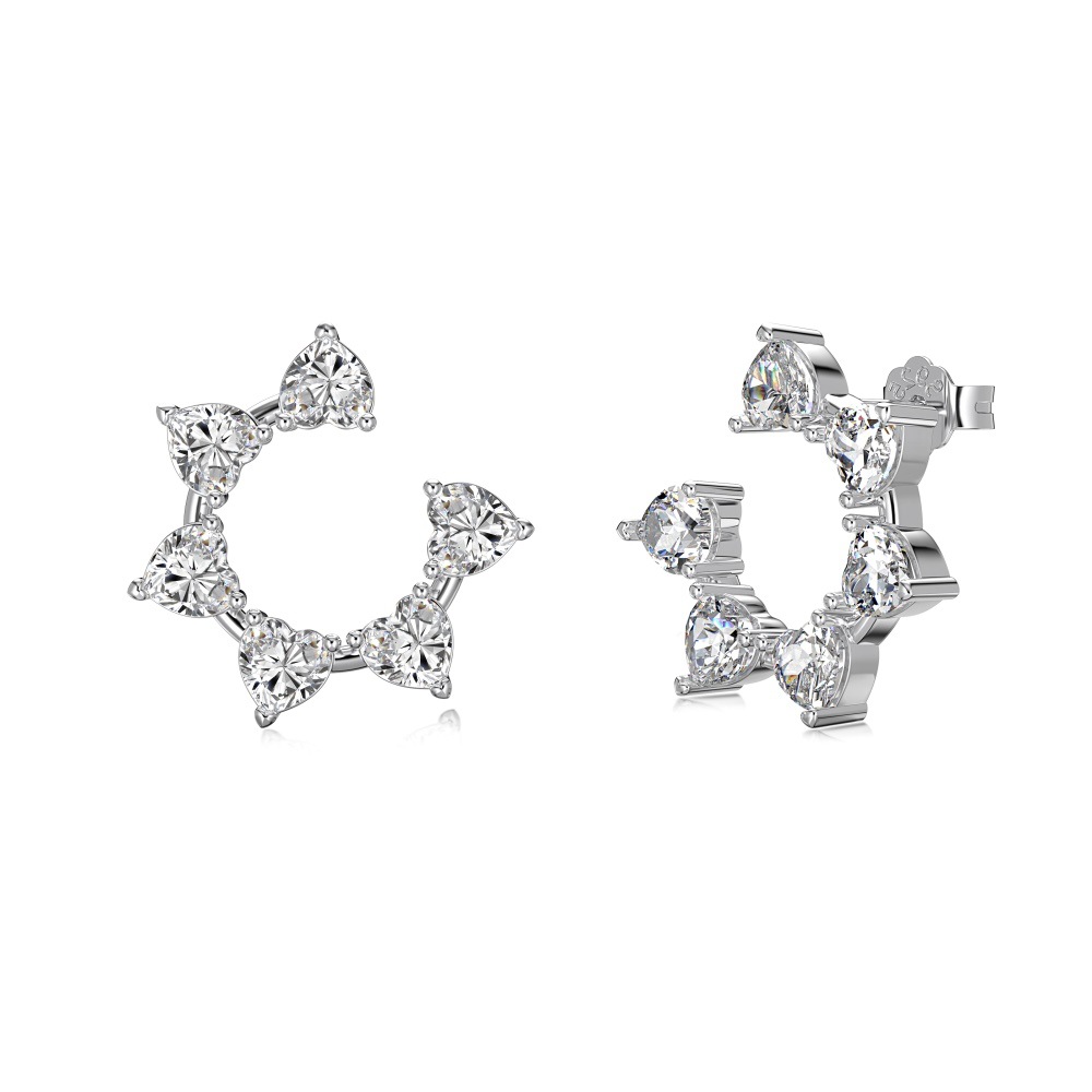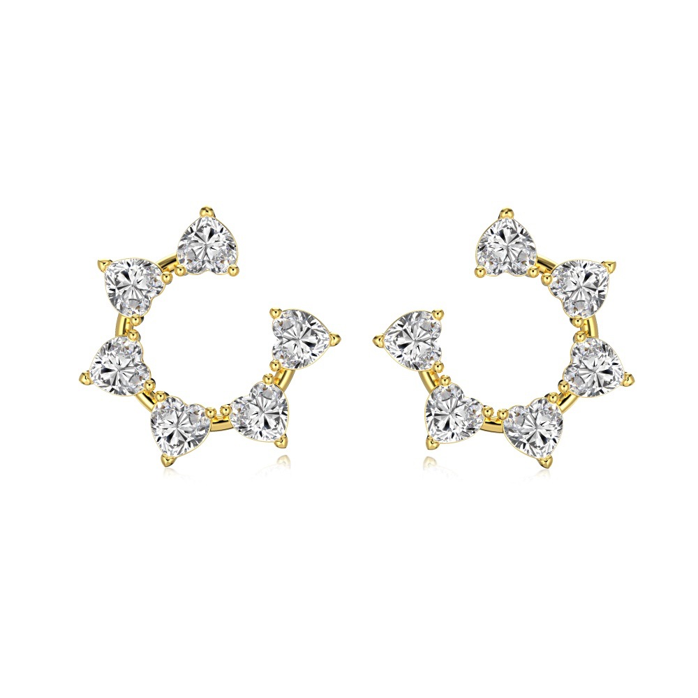 S925 Sterling Silver White Heart-shaped Gang Drill Inlaid SUNFLOWER Ring Fashion Design Earrings