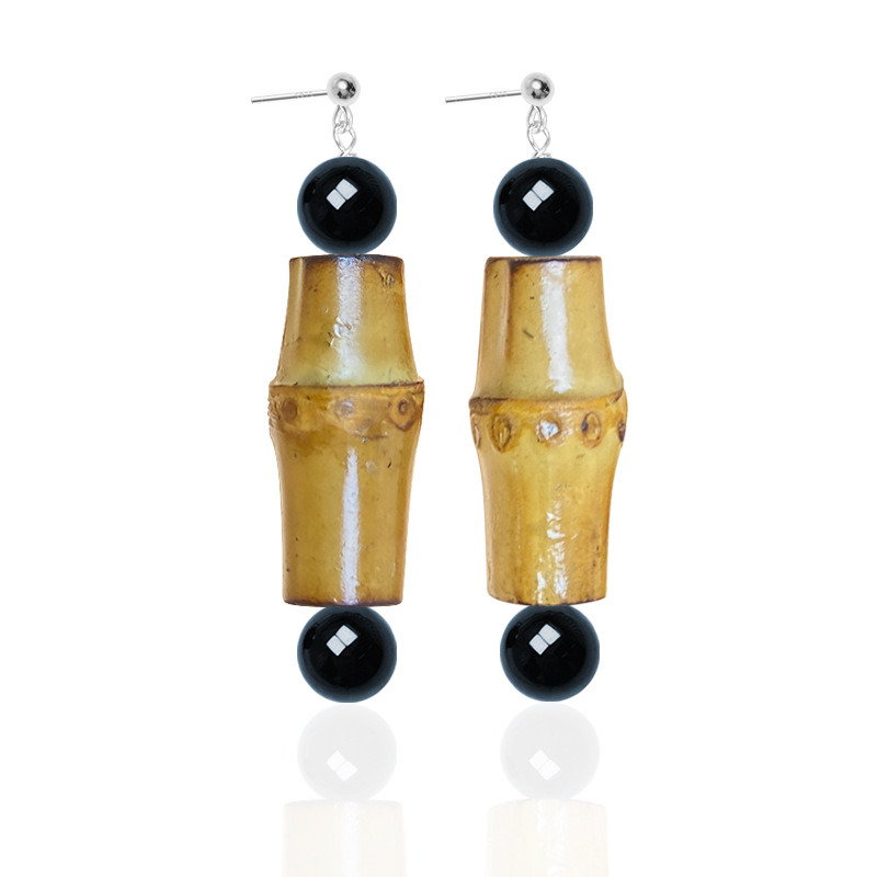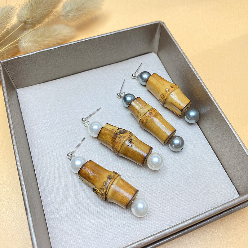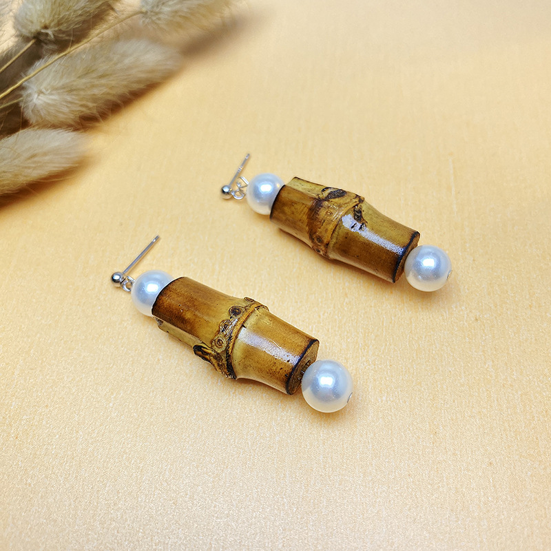Size: The size of natural bamboo joint is about 12.5 * 27mm, the diameter of agate and Pearl is about 8mm, and the total length of ear studs is about 5cm