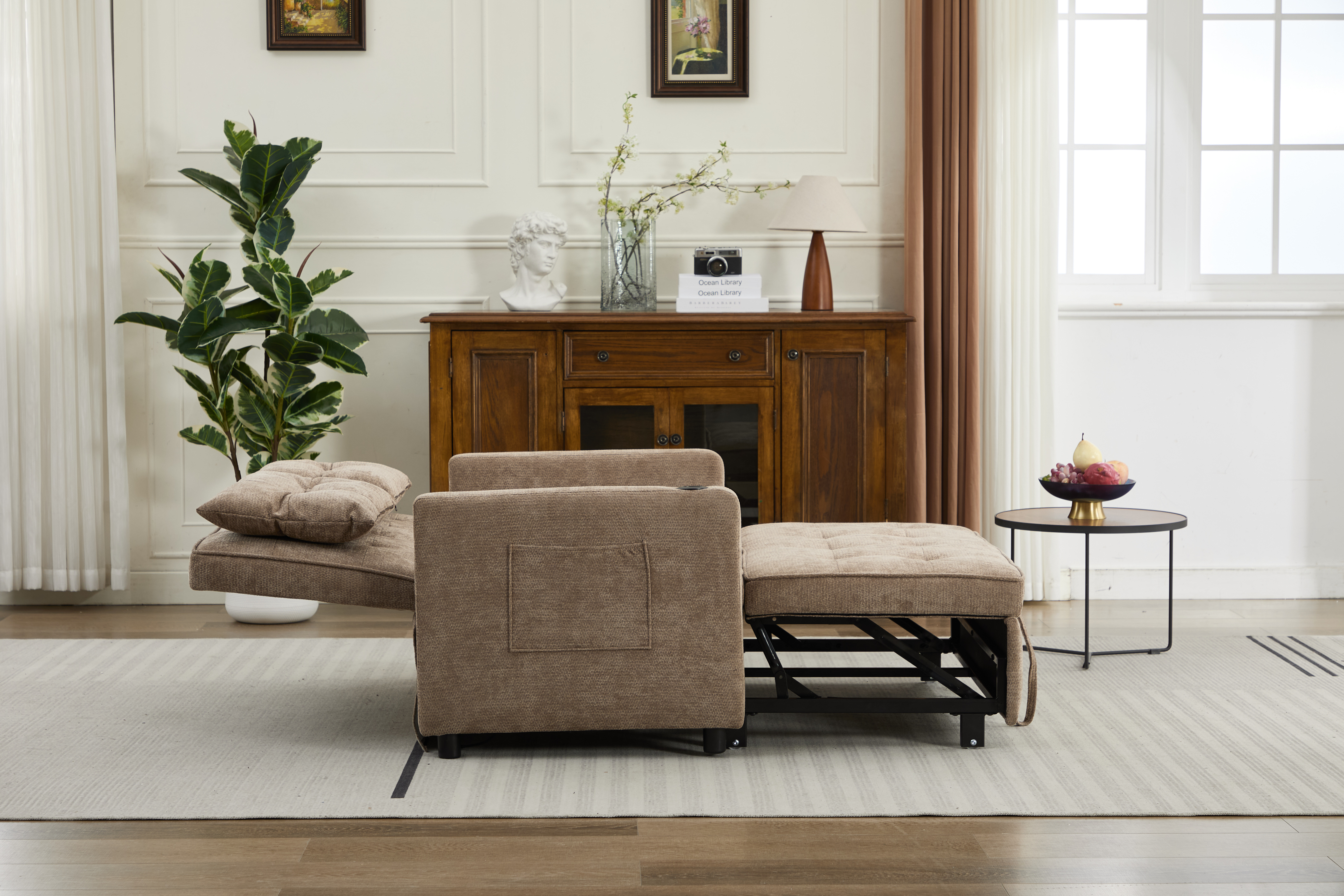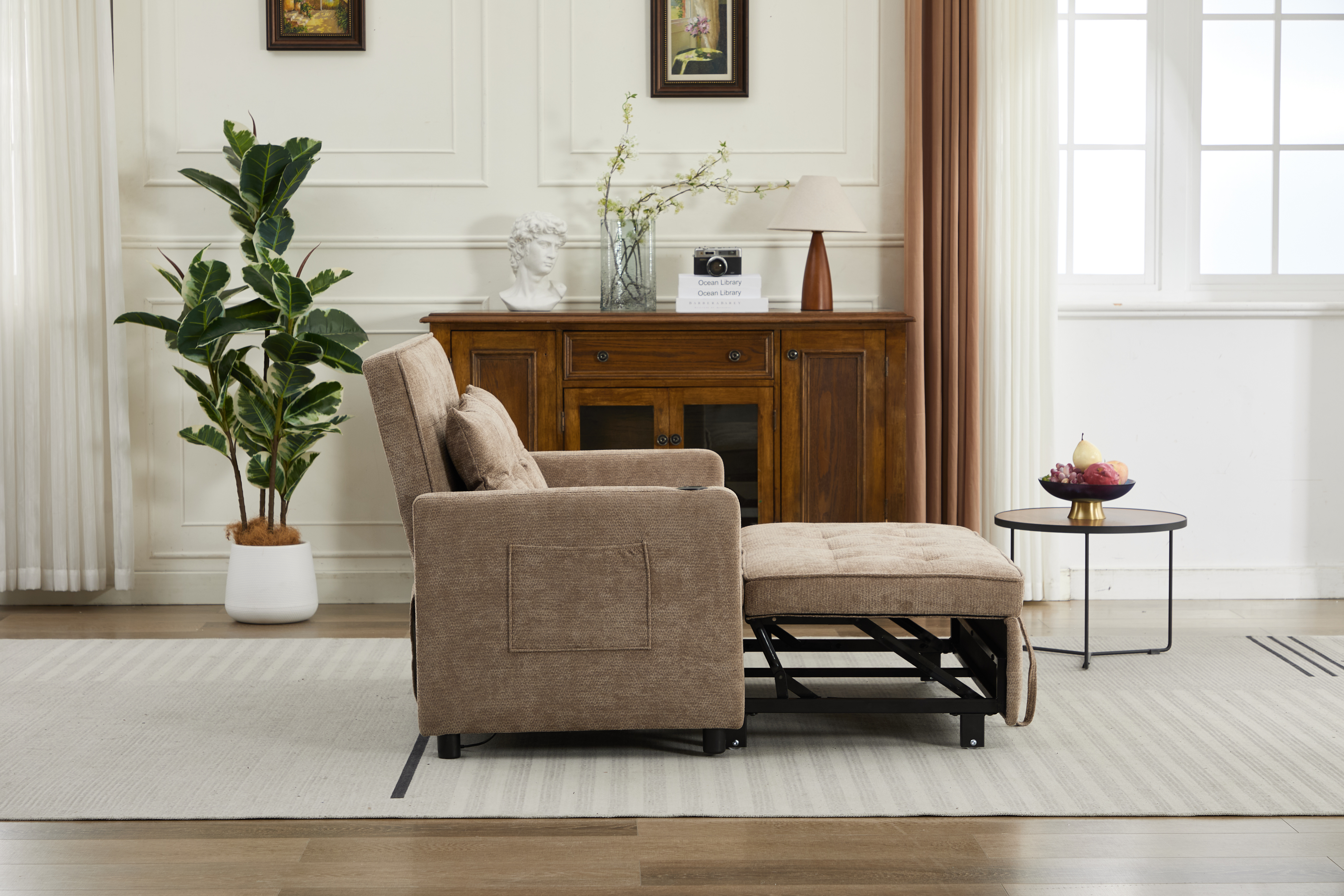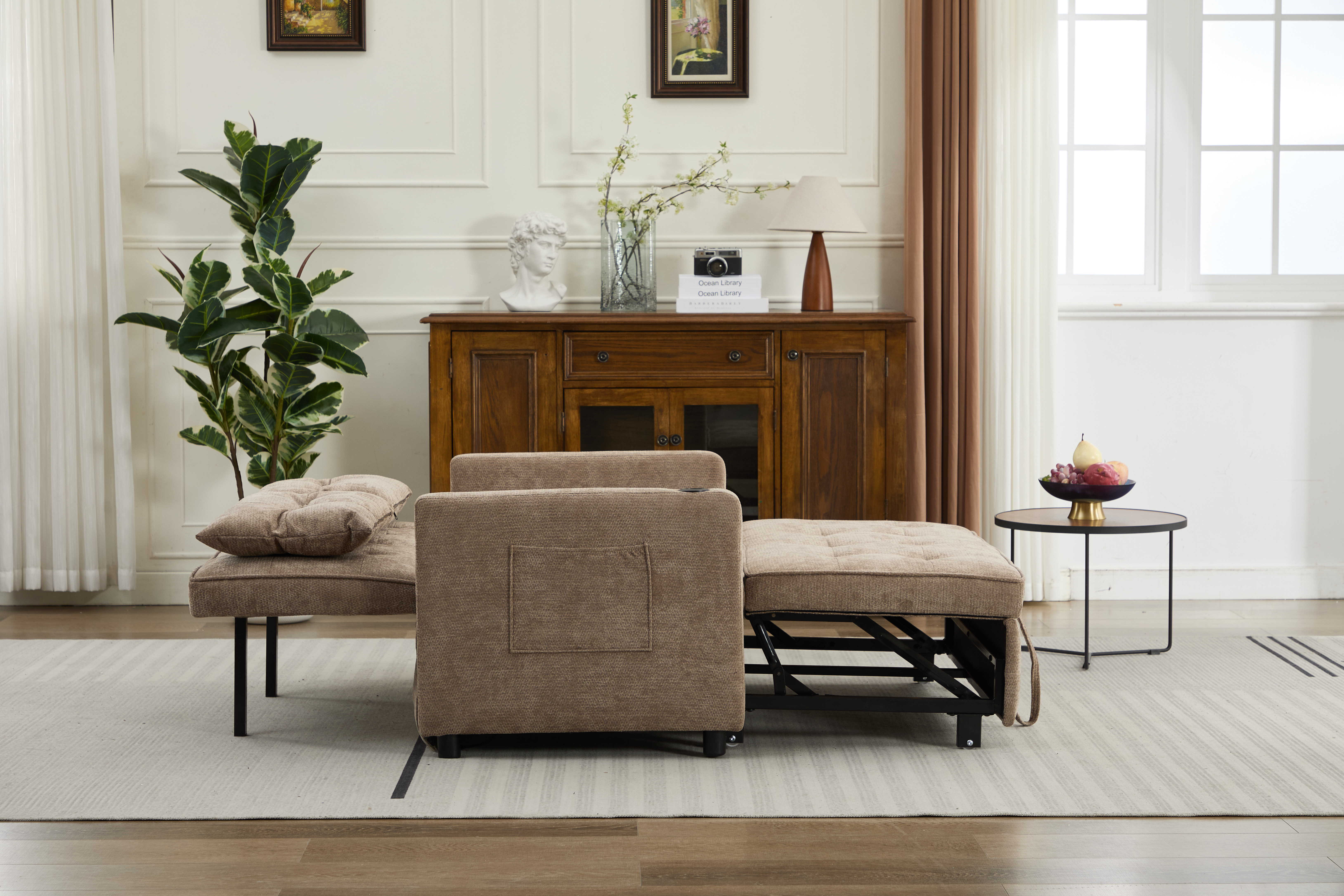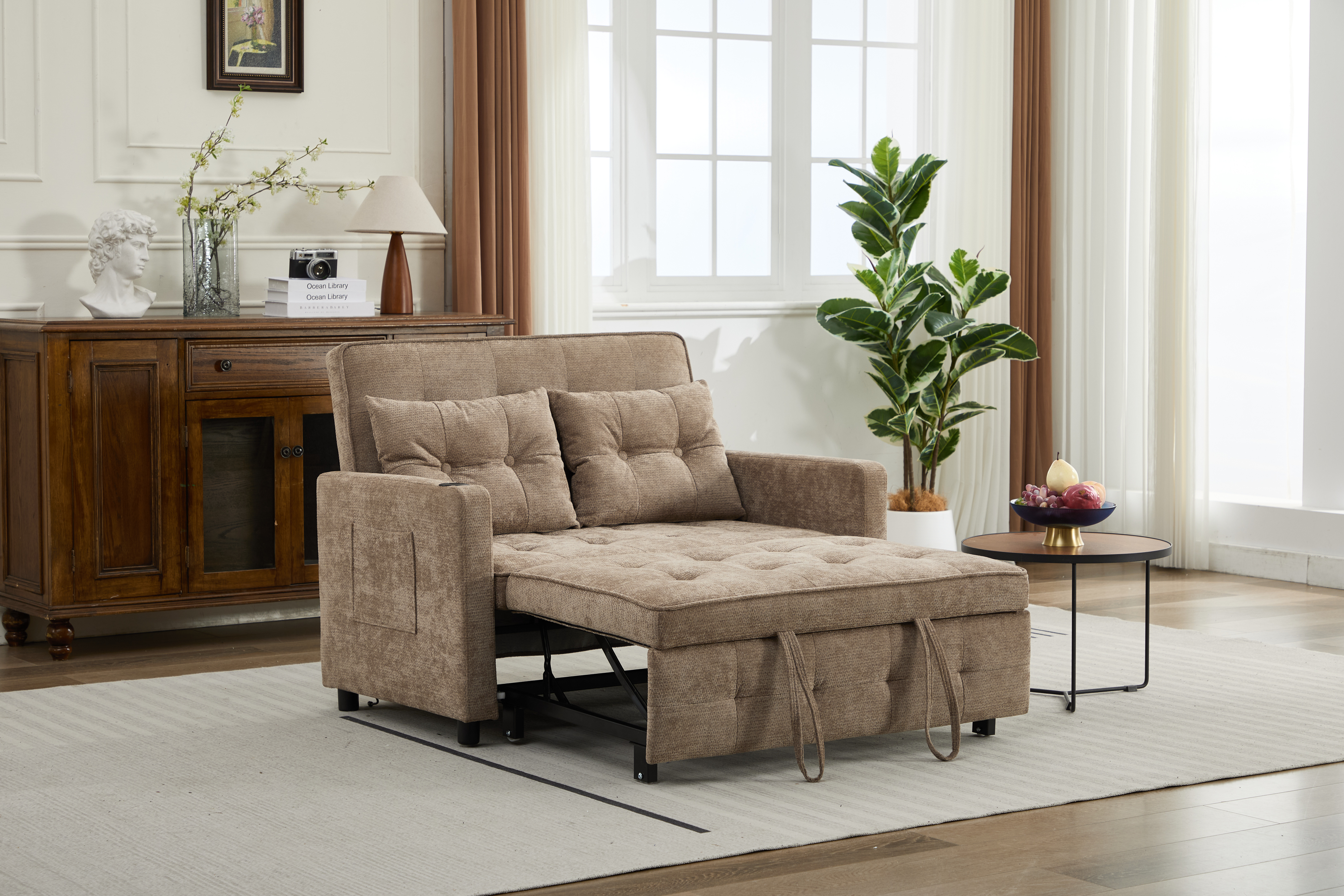 Product Name:Sleeper Chair 3-in-1 Convertible Chair Bed Pull Out Sleeper Chair Beds Adjustable double Armchair Sofa Bed with USB Ports, Side Pocket, Linen camel