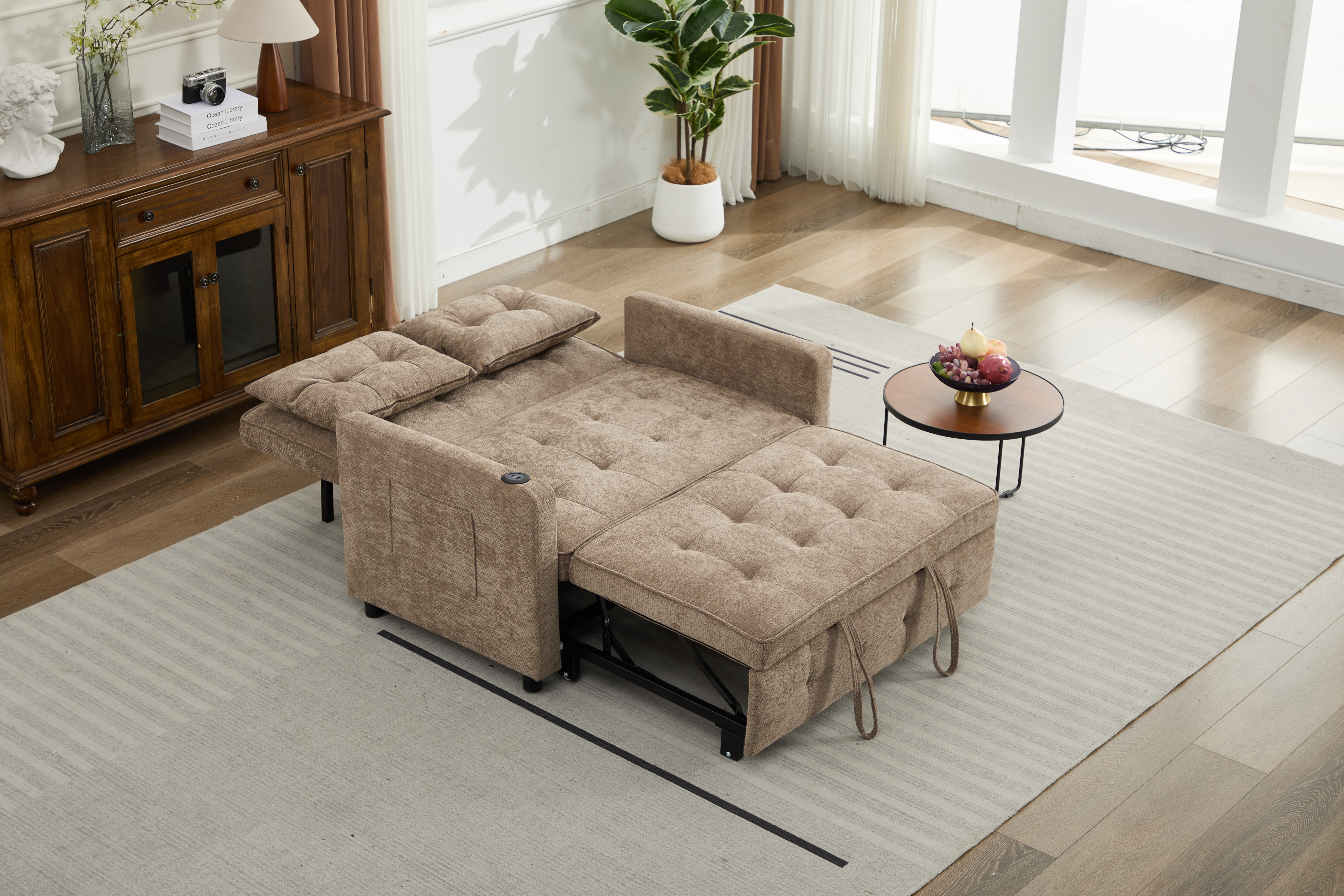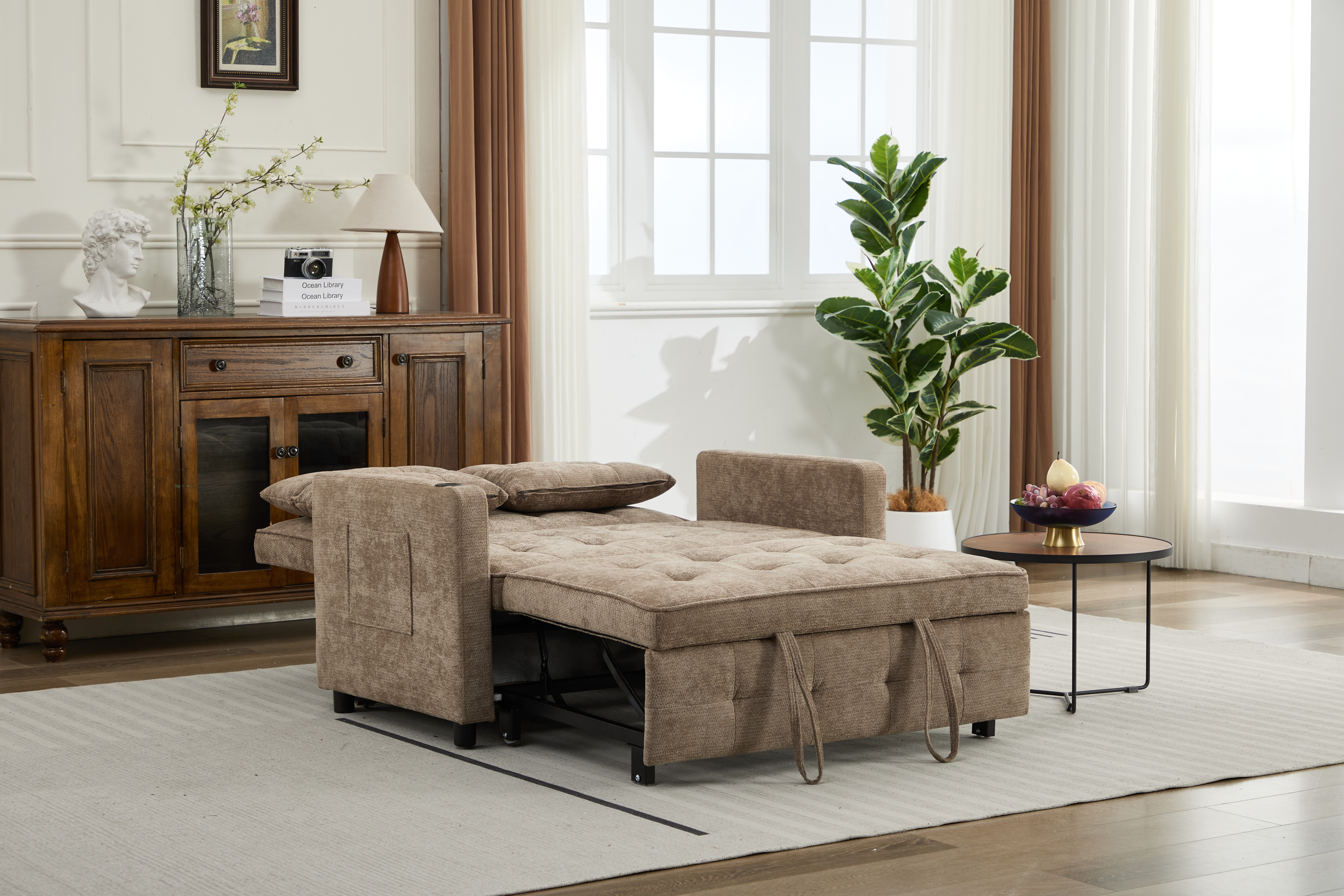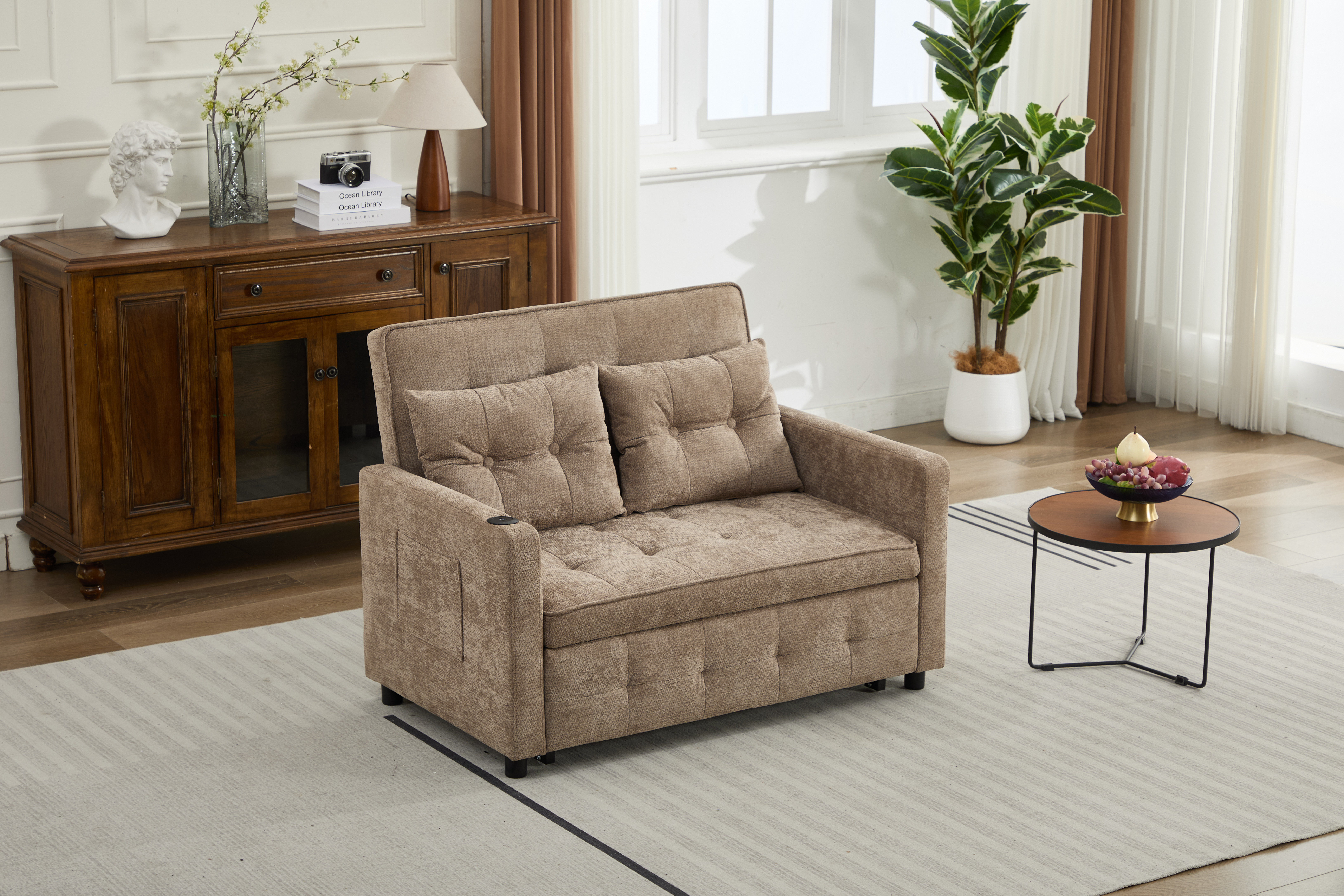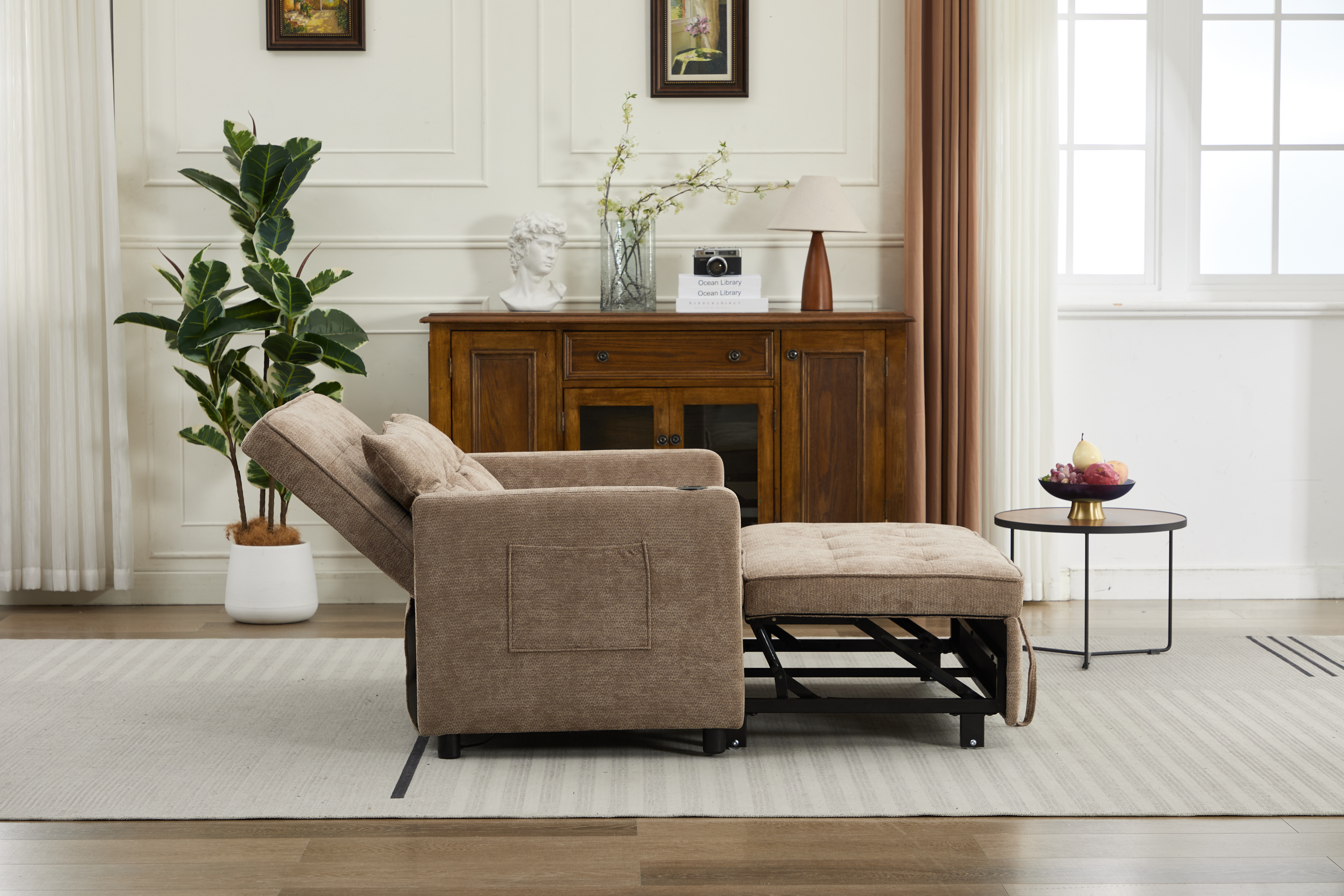 Product Name:Sleeper Chair 3-in-1 Convertible Chair Bed Pull Out Sleeper Chair Beds Adjustable double Armchair Sofa Bed with USB Ports, Side Pocket, Linen camel