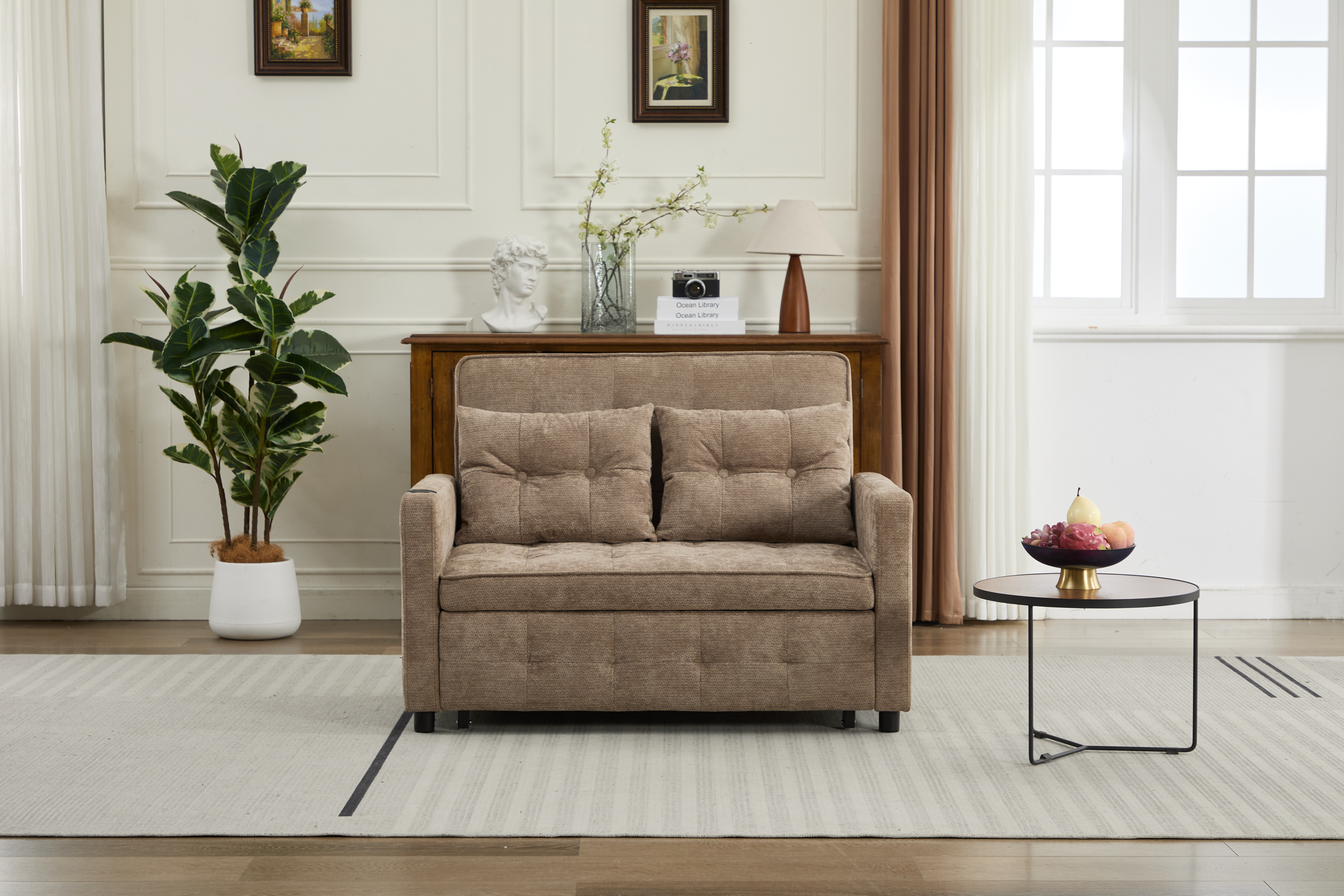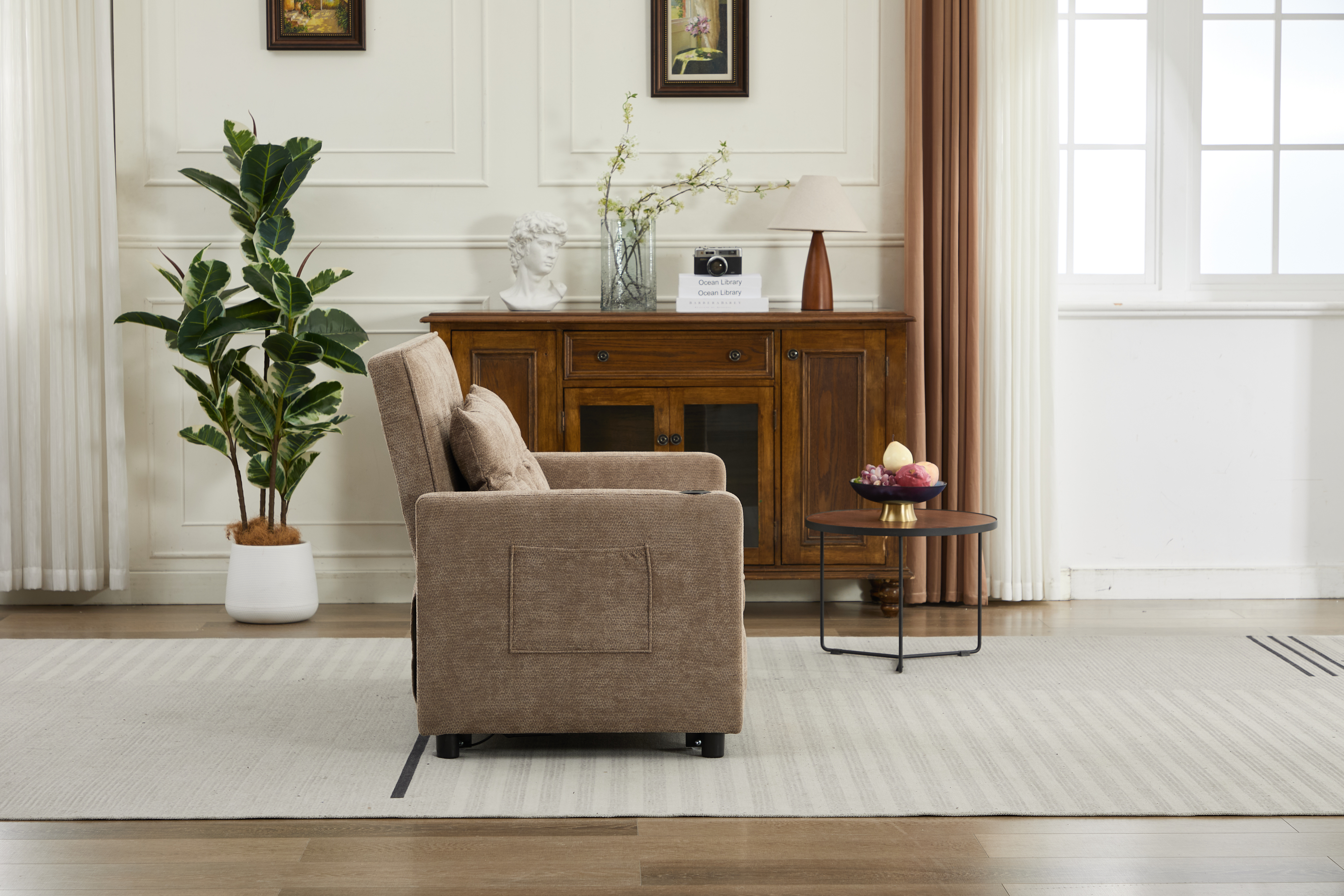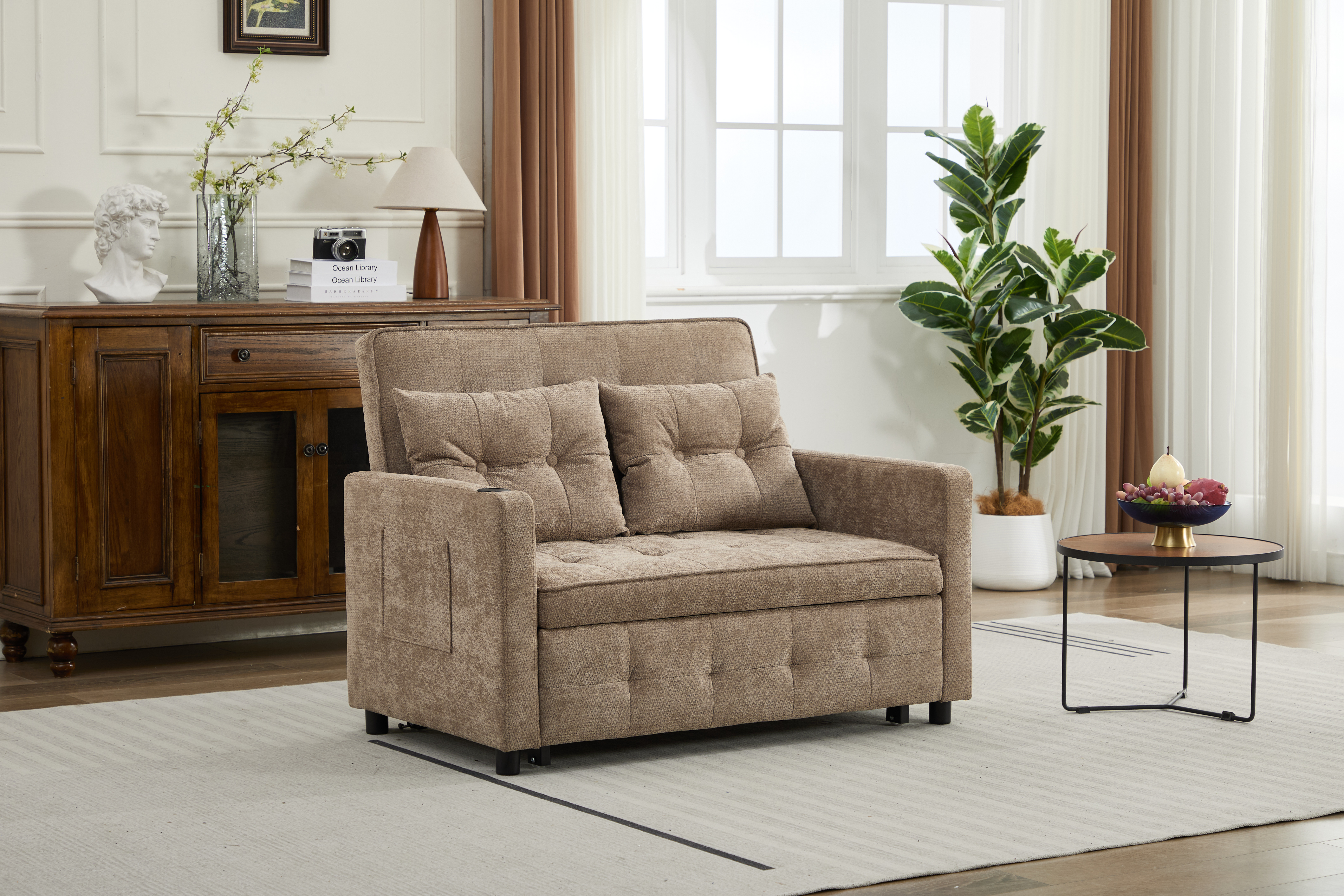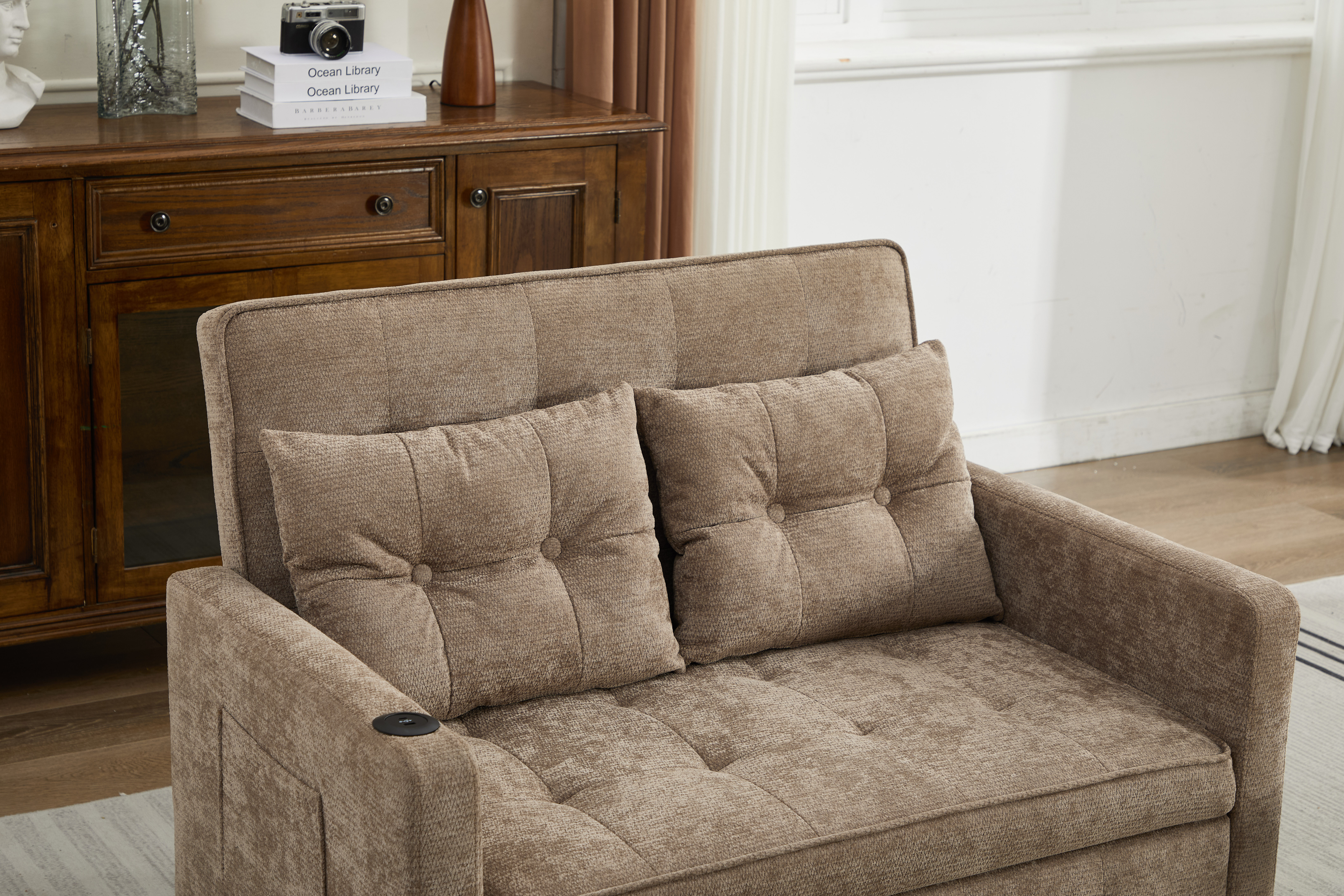 Product Name:Sleeper Chair 3-in-1 Convertible Chair Bed Pull Out Sleeper Chair Beds Adjustable double Armchair Sofa Bed with USB Ports, Side Pocket, Linen camel