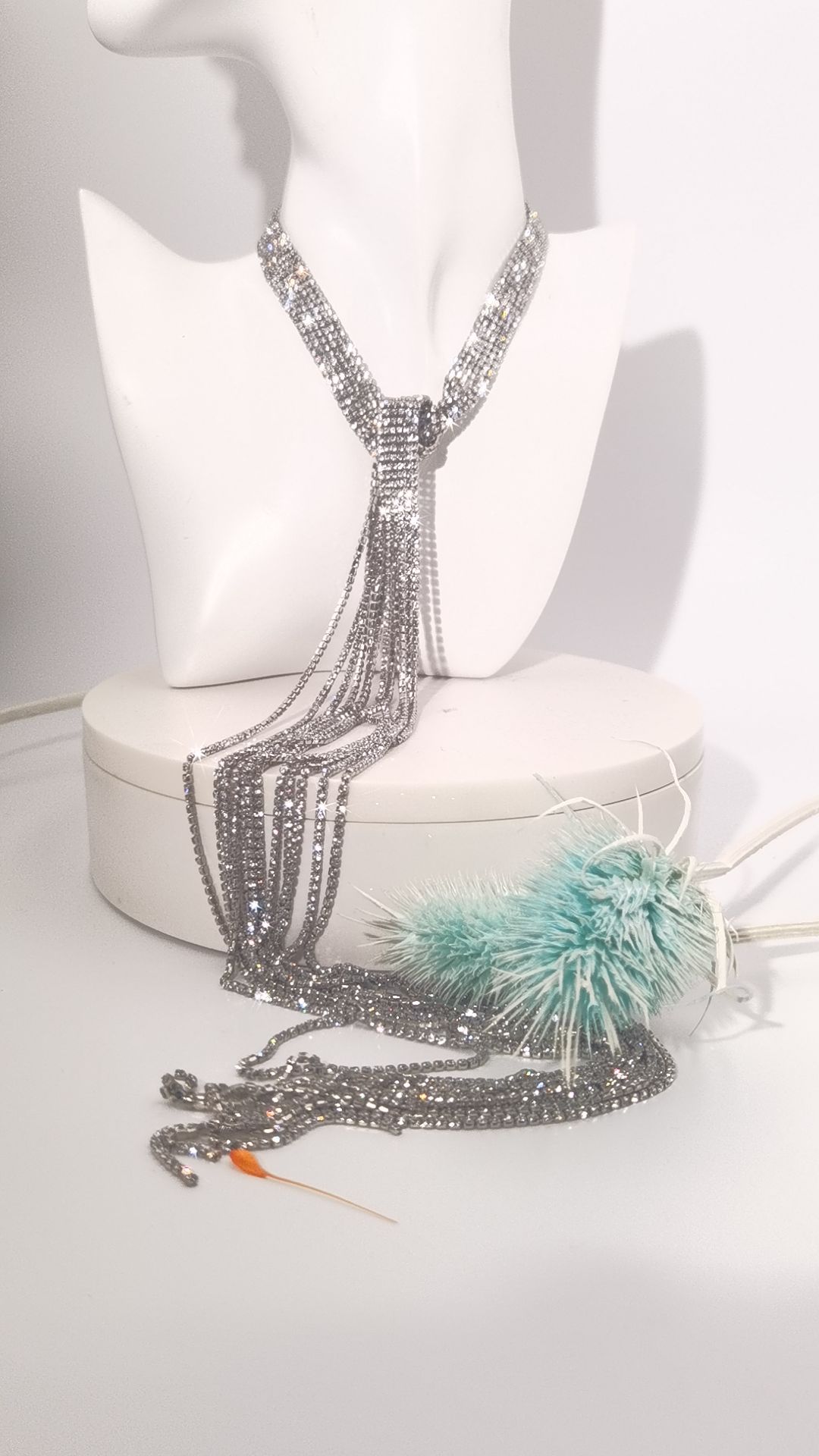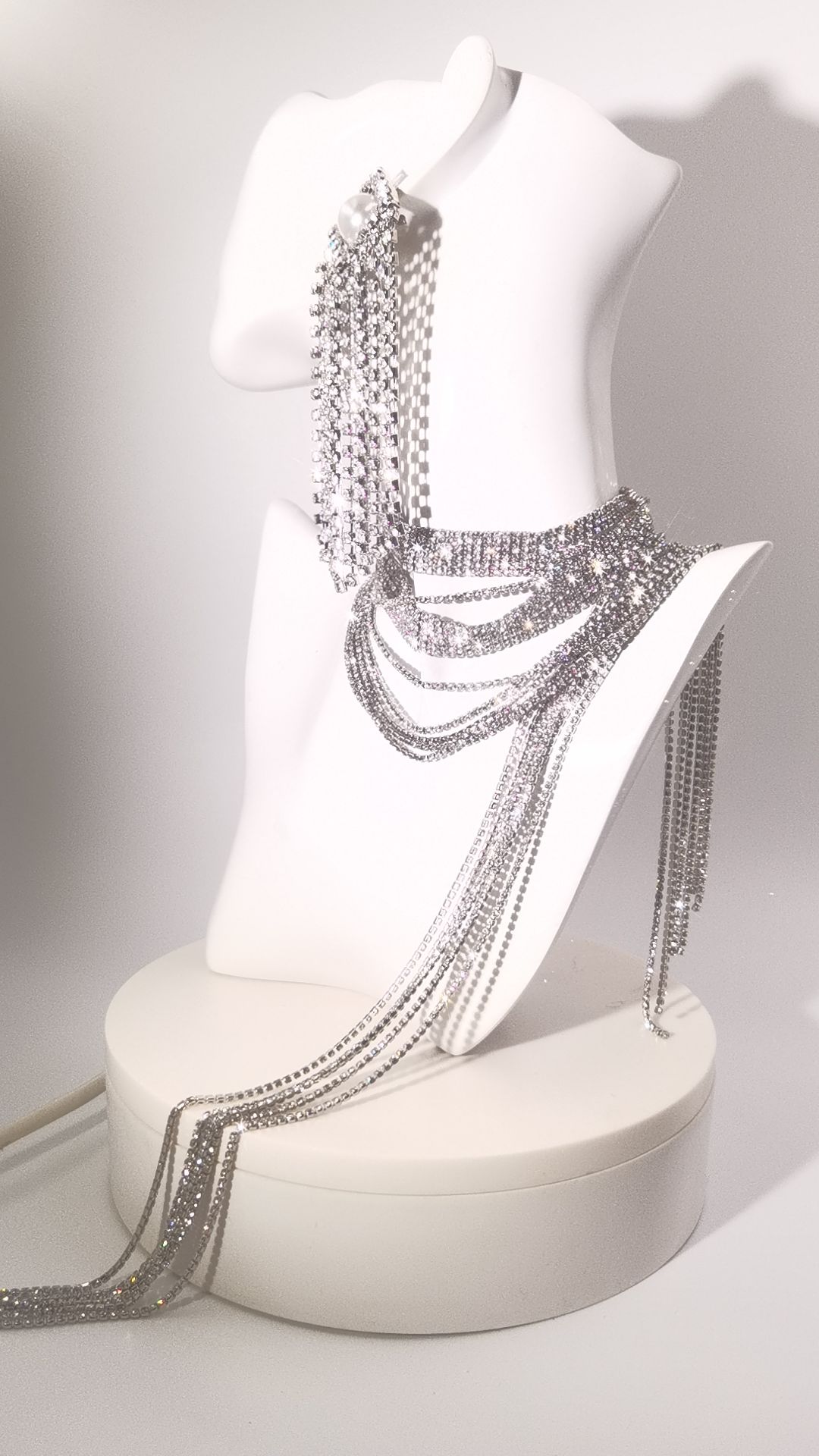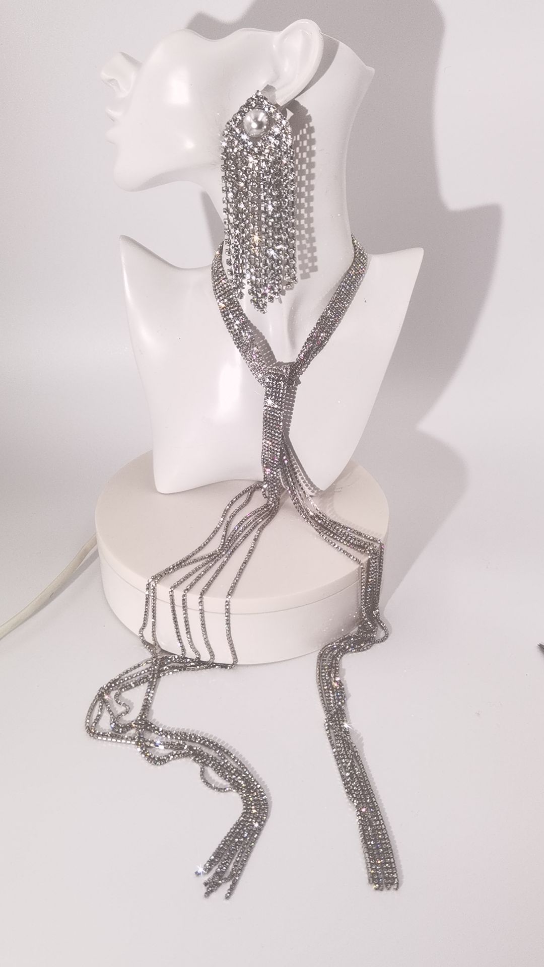 This 2-piece jewelry set features eye-catching sparkling fringe details on both the halter necklace and earrings. The delicate tassels sway gracefully with every movement, creating a charming dynamic shine and making you stand out instantly in the crowd.