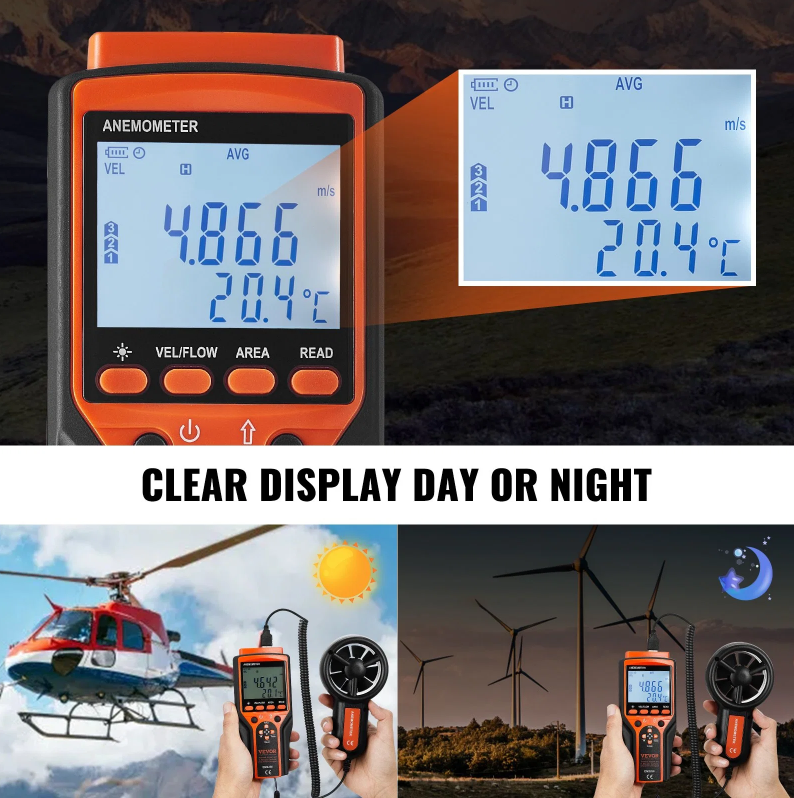 24/7 Clarity You Deserve: Say goodbye to guesswork, day or night. Our anemometer boasts a distinctive LED backlight screen that ensures effortless readings in any lighting conditions. Choose the wind speed with six different units – m/s, km/h, ft/min, mph, knots, and supports bft. MAX/MIN/AVG/CU wind speed display. Tailor your measurements to your liking and stay in control.