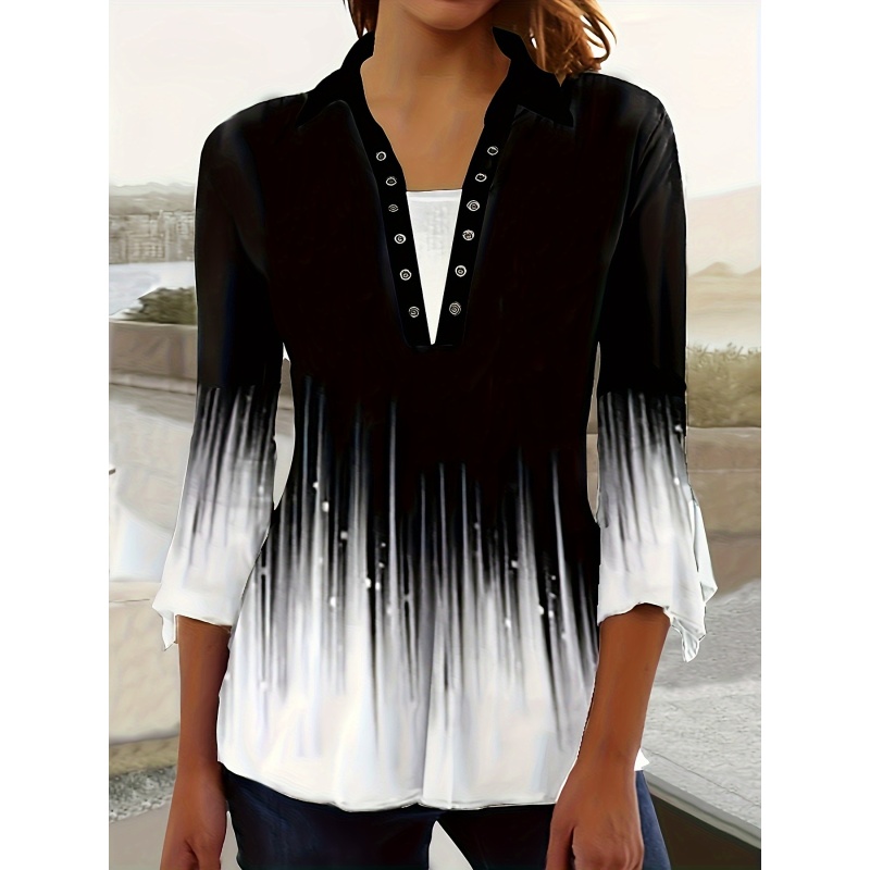 Spring And Autumn New Printed Lapel Three-quarter Sleeve T-shirt Irregular Cuff Button Top
