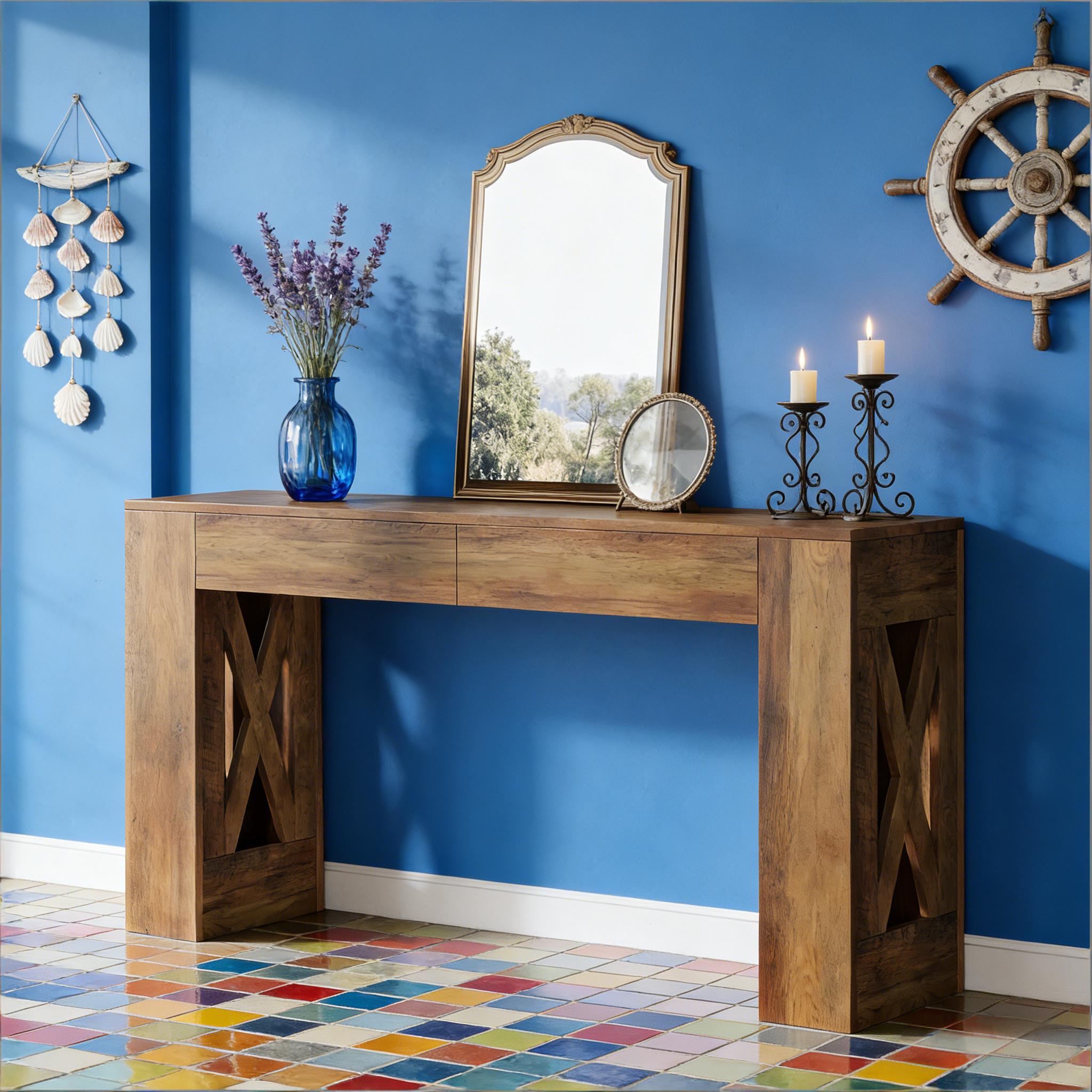Important Reminder!!! 1) Attention: All products in our store do not support Canada self pickup ordering. Please do not create shipping labels for Canada. Our American products do not support self pickup to Canada 2)We do not ship to Alaska, Hawaii, US protectorates (e.g., Puerto Rico), P.O. boxes, or APO/FPO addresse 3)We don’t accept non-defective remorse returns Rustic Farmhouse Style - This 63-inch console table brings timeless farmhouse charm to your home with its warm brown finish and signature X-shaped legs. It's the perfect blend of rustic character and modern, clean lines. Spacious Top & Smart Storage - The long, narrow tabletop offers ample room for lamps, decor, and daily essentials. Two smooth-gliding drawers provide hidden storage to keep remotes, keys, and clutter neatly out of sight. Built to Last - Expertly crafted from high-quality engineered wood and supported by a sturdy X-frame base, this table is built for exceptional stability and everyday durability, ensuring it remains a staple in your home for years. Versatile Placement - Designed to fit anywhere. Use it as an entryway table to welcome guests, a sofa table in the living room, or a stylish accent in a hallway to maximize both form and function.