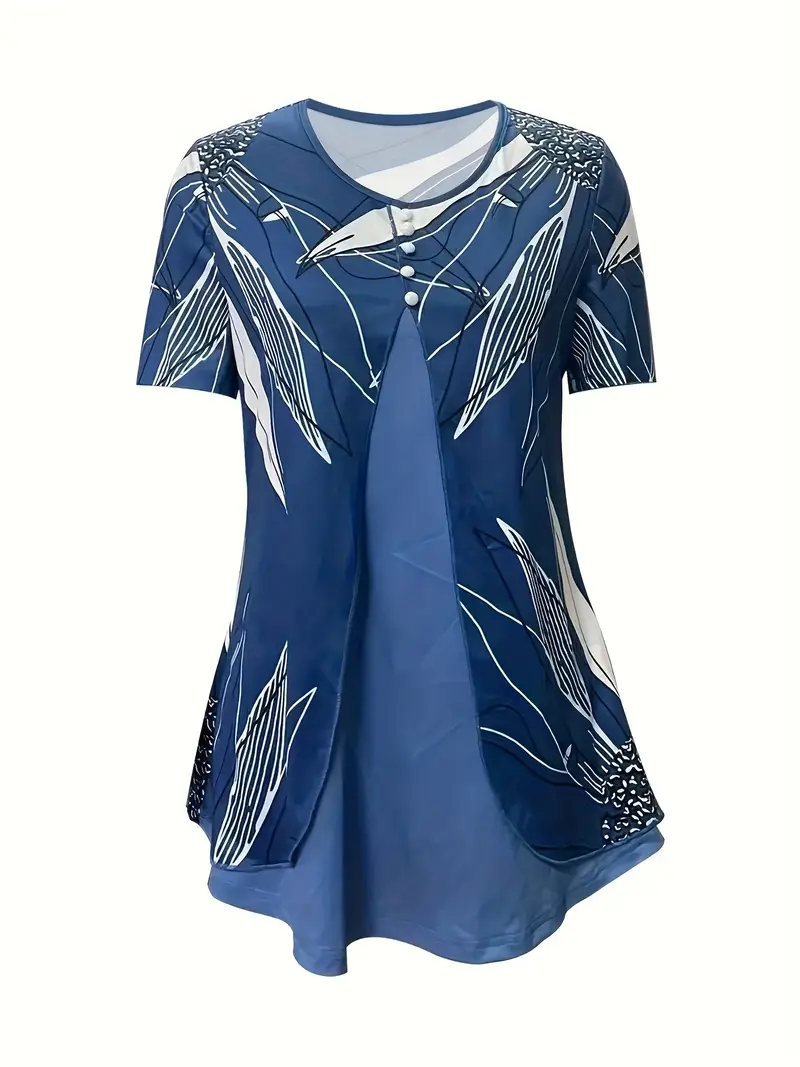 Summer New Short-sleeved Printed Fake Two-piece T-shirt V-neck Fashion Spike Top