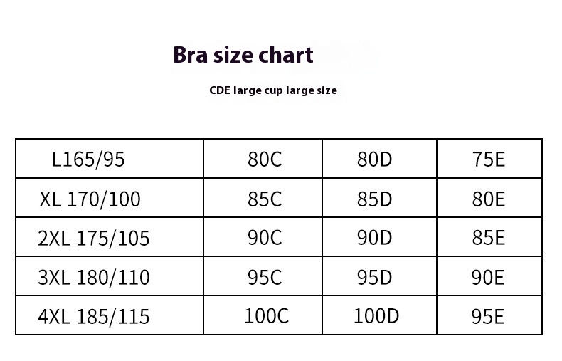 Size: L [recommend 80CD/75E Cup],XL [recommend 85CD/80E],2XL [recommend 90CD/85E],3XL [recommend 95CD/90E]],4XL [recommend 100CD/95E]]