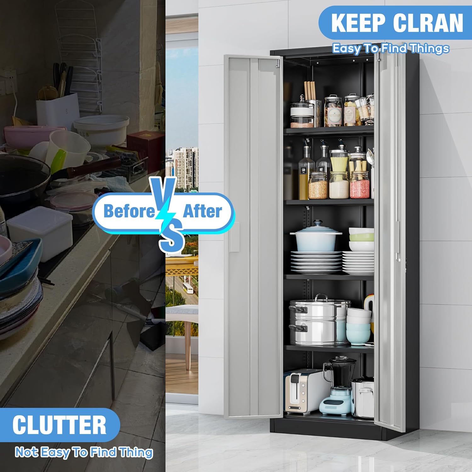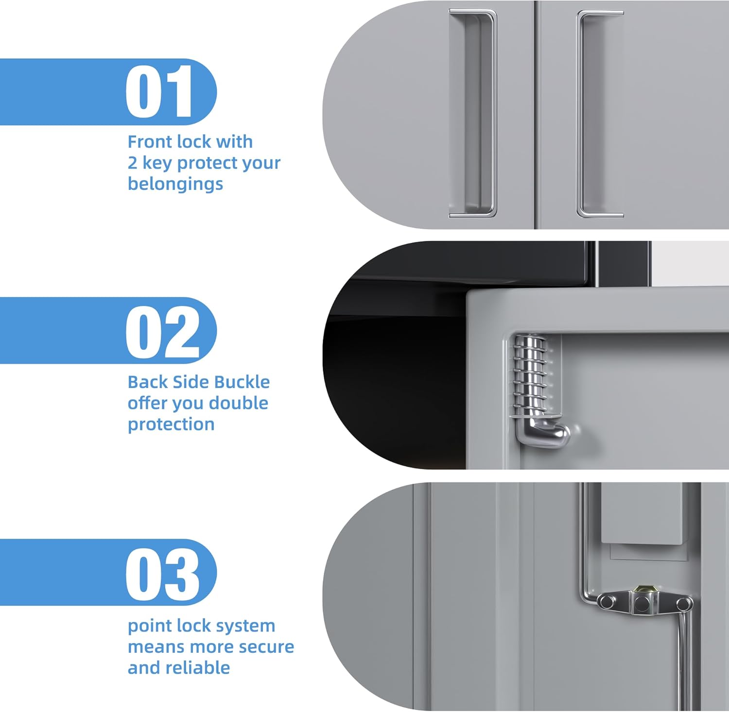 Safety lock: The right side of the metal storage cabinet is made of durable steel and security locks, which effectively protect the items stored in it from theft and loss.