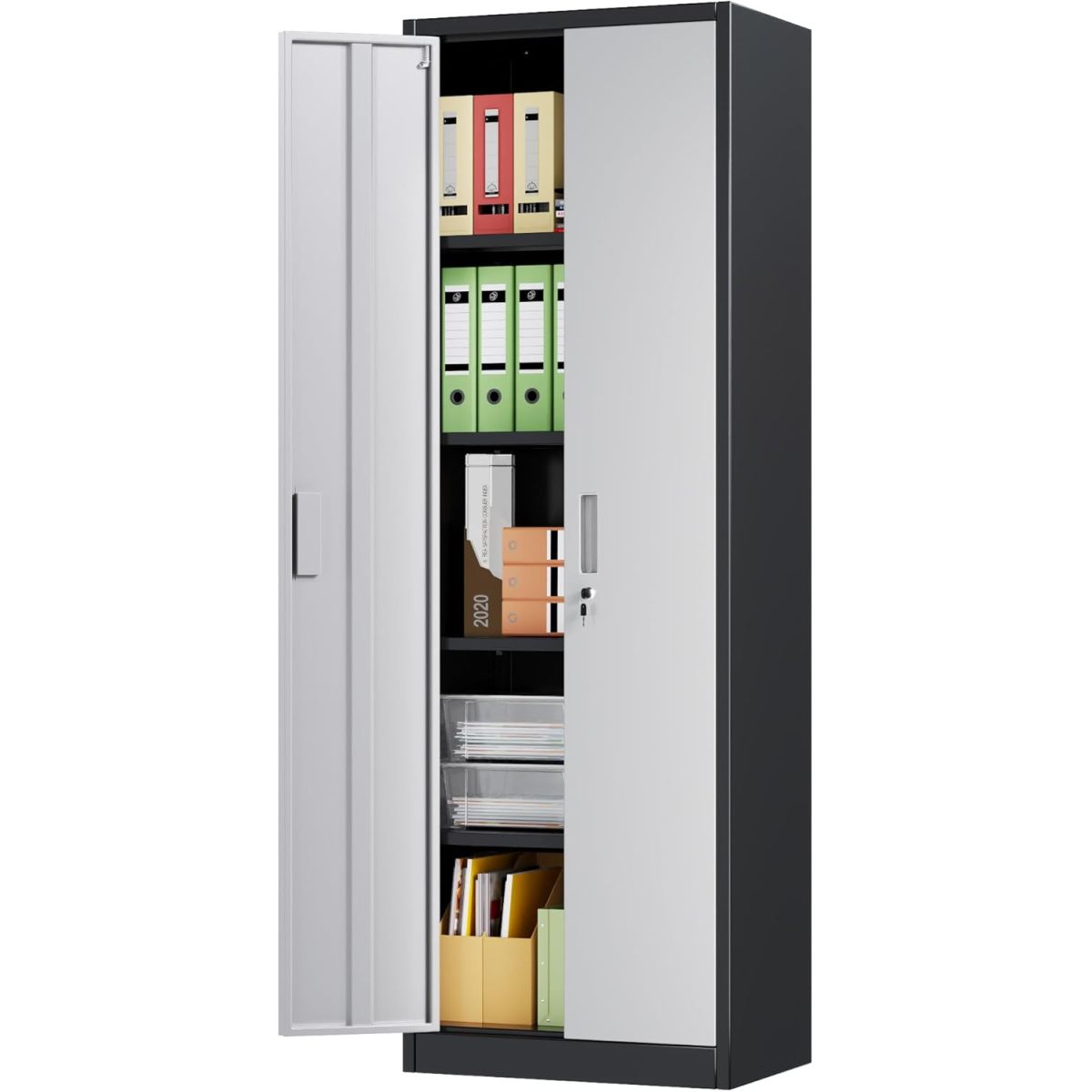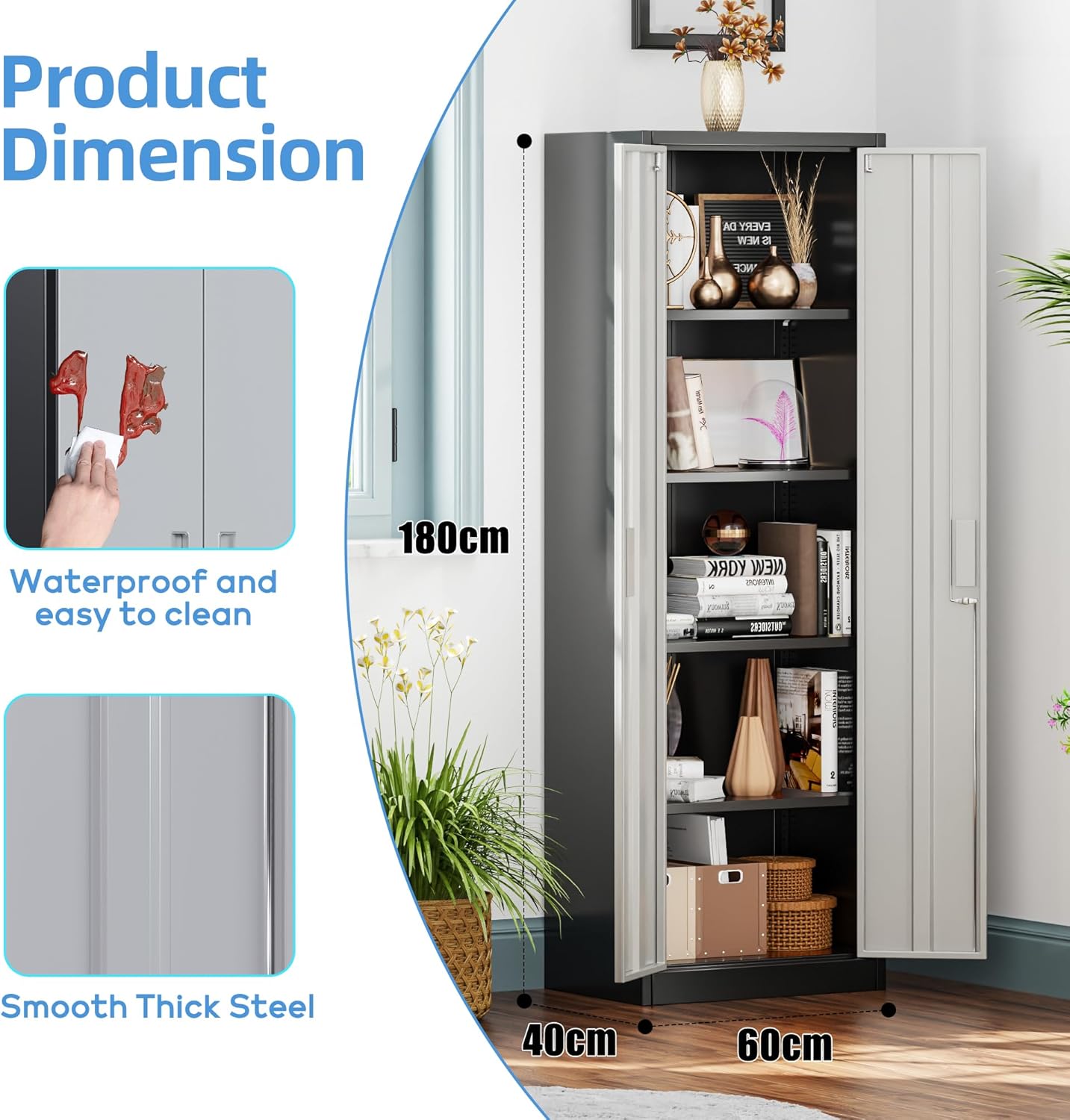 SUPEER Filing Cabinet, Metal Cabinet With 4 Height-Adjustable Shelves, Sheet Steel Powder Coating, Steel Cabinet For Tools, Garage, H 180 Cm X W 60 Cm X D 40 Cm Black Grey