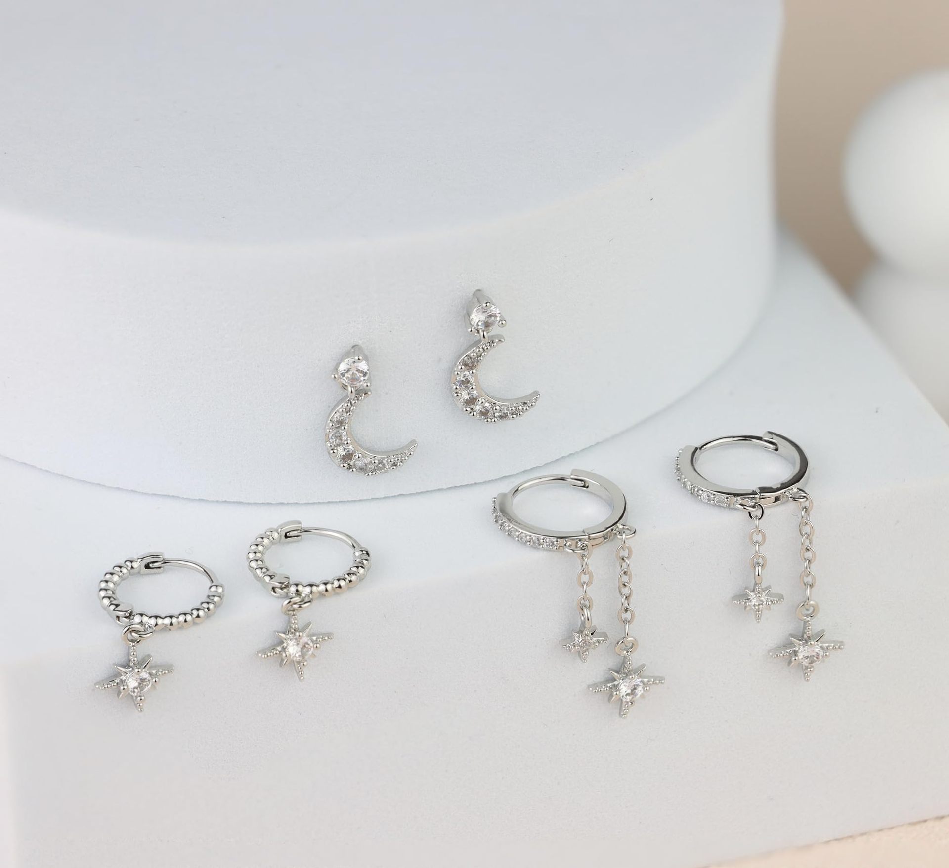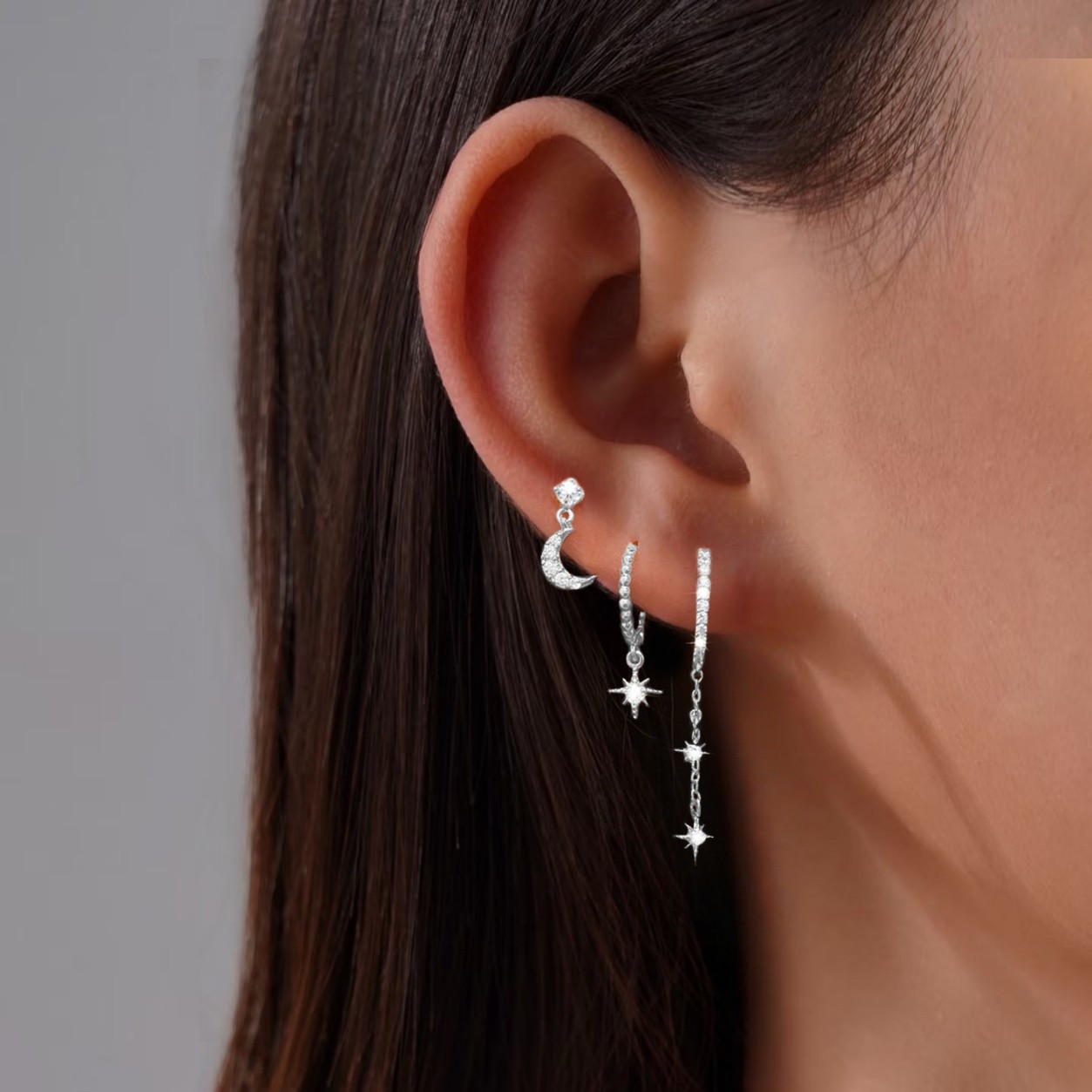Three Brass Earrings With Genuine Gold Electroplating And Zircon Inlay