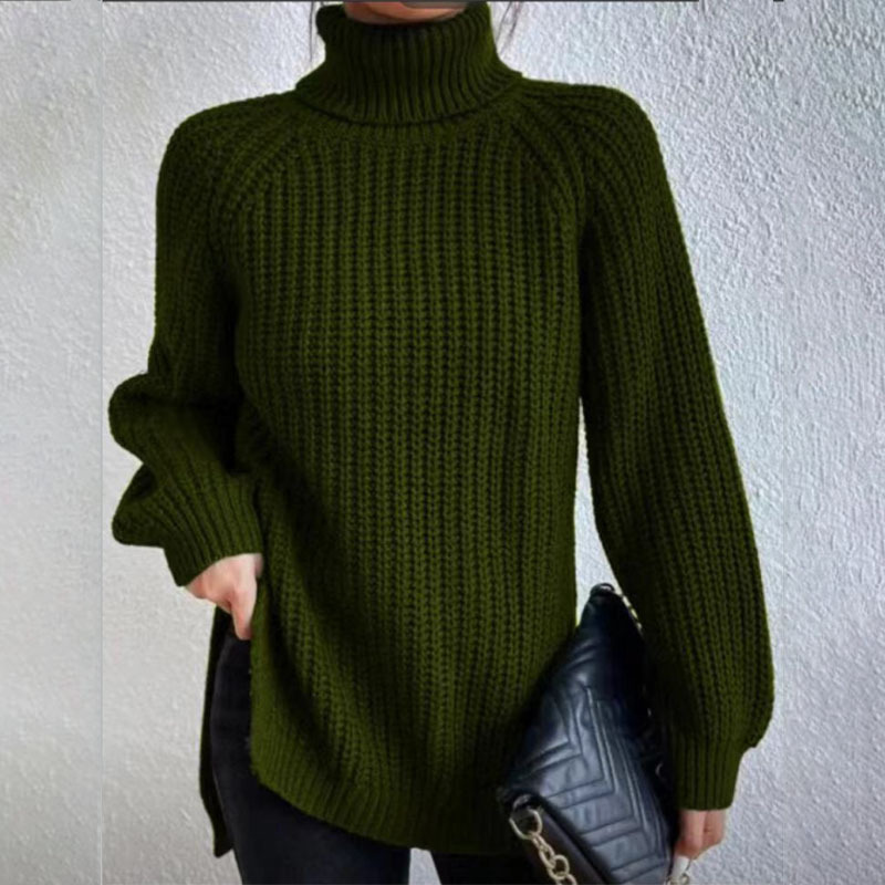 Turtleneck Pullover Sweater With Split Design Fashion Simple Solid Color Long Sleeve Tops Women's Clothing