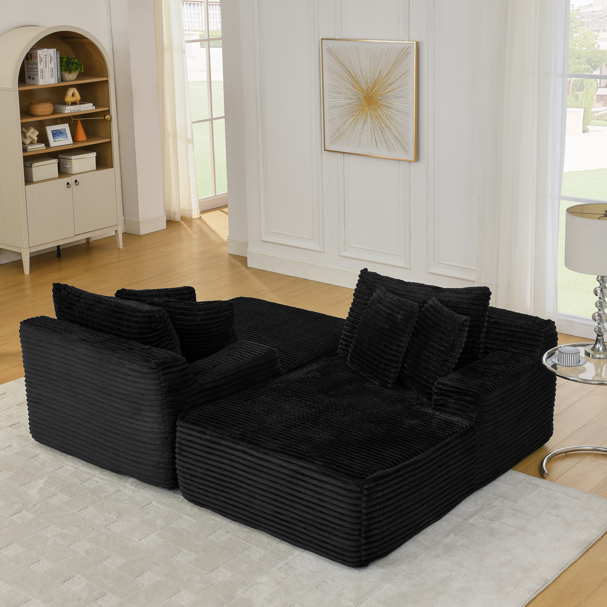 Product Name:Two-seater lazy sofa lounge chair,Compressed sofa no assembly required, made of velvet fabric, fluffy modern lounge chair, used for indoor living rooms and bedrooms-Black