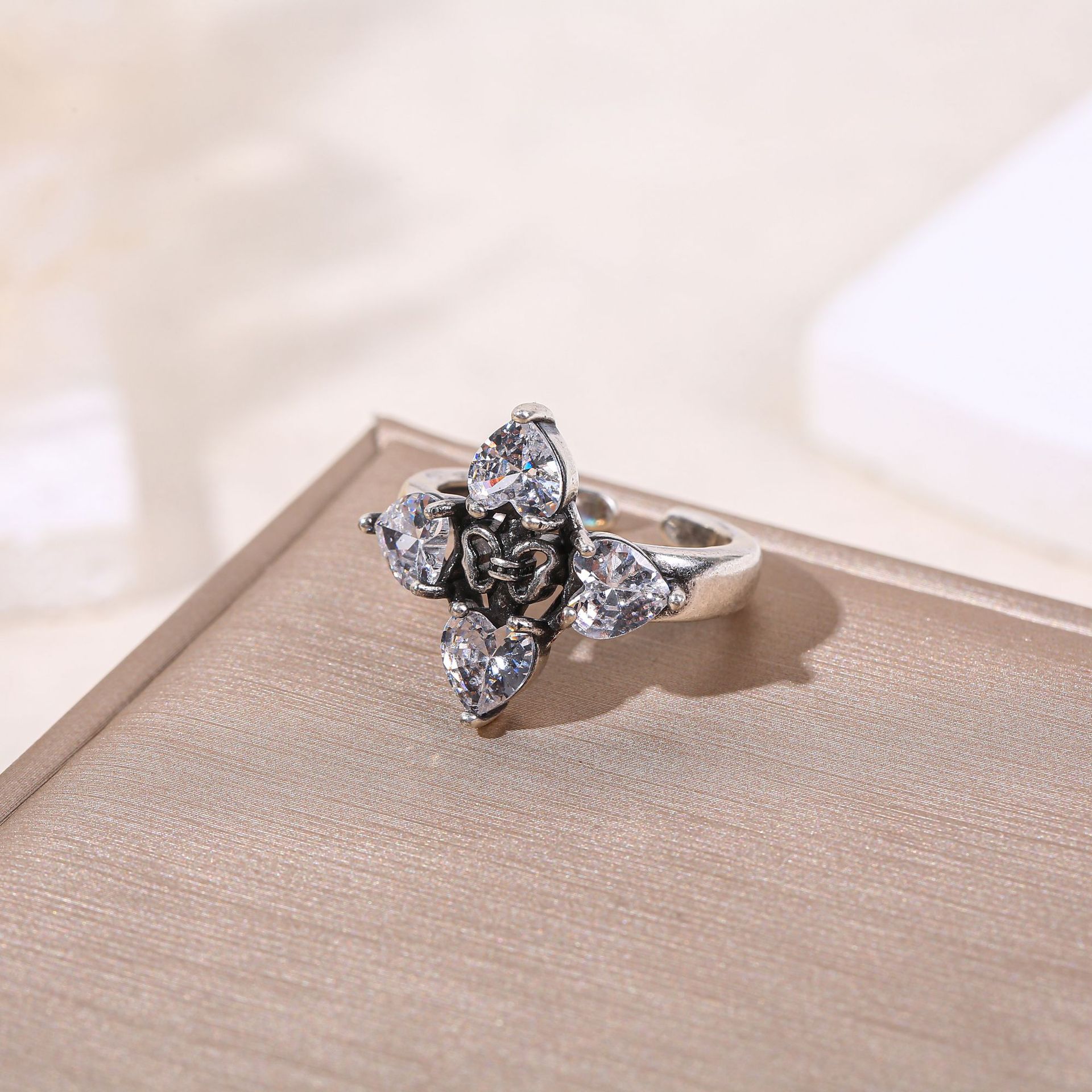 Waterdrop Zircon Pigeon Egg Simulated Ring, Luxury Minimalist French Style Open Adjustable Ring