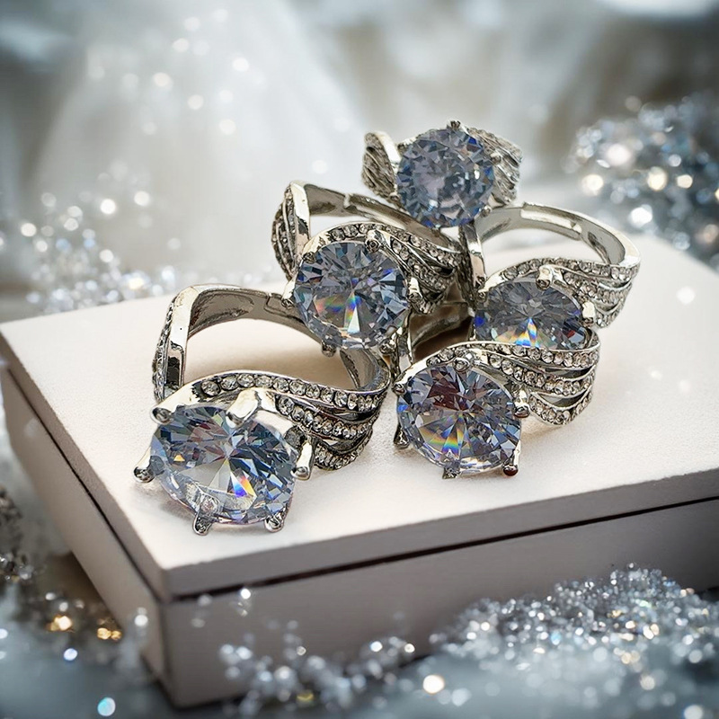 Women's Crystal-Encrusted Ring & Couple Rings Light Luxury, High-End, Ultra-Shiny, Fashionable & Elegant Niche Versatile Band Accessories