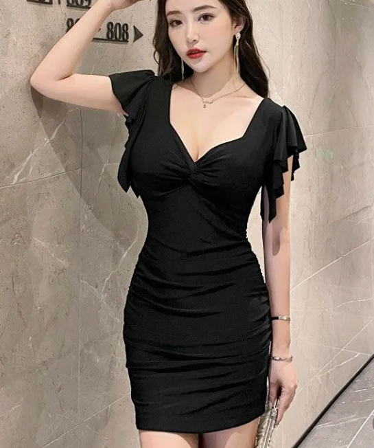 Women's Deep V-neck Thread Sunken Stripe Dress