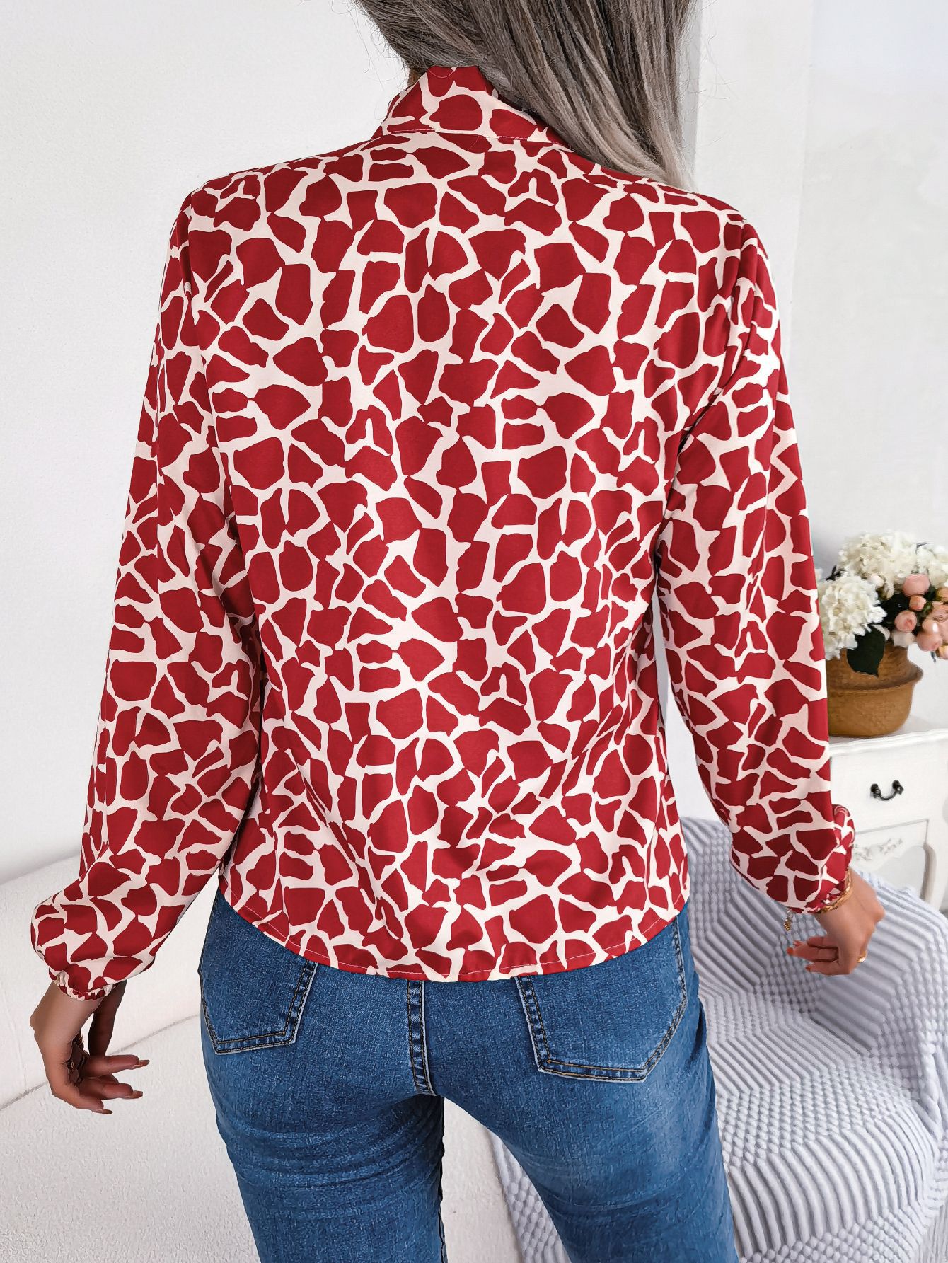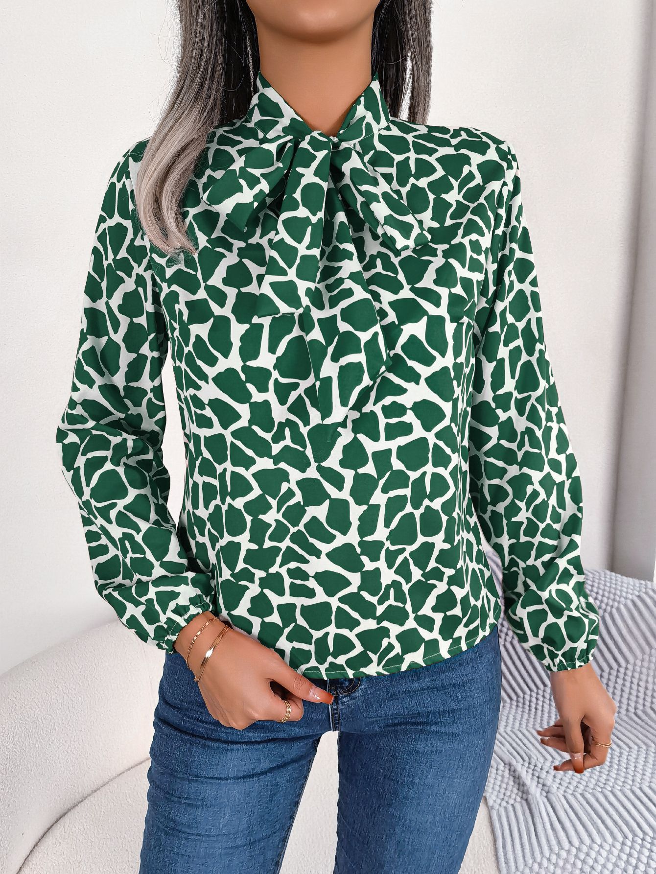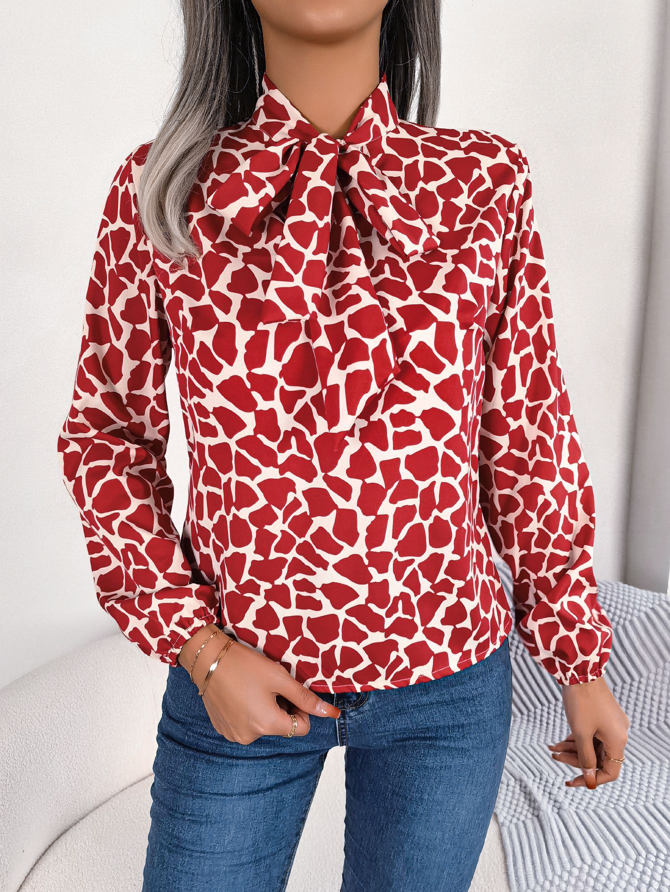 Women's Elegant Color Block Tie Waist Lantern Sleeve Chiffon Top