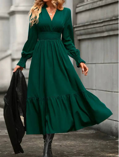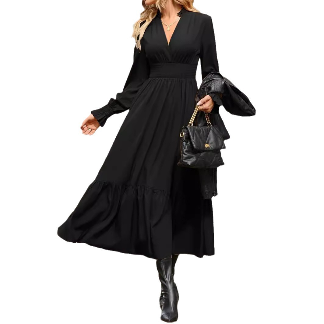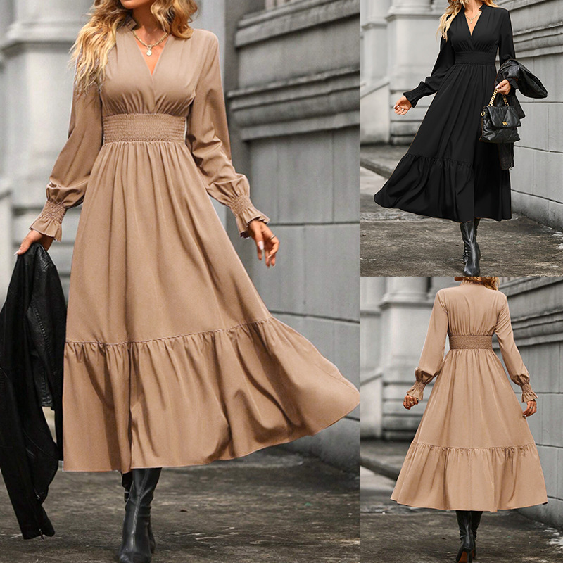 Women's Fashion Lantern Long Sleeve V-neck Dress