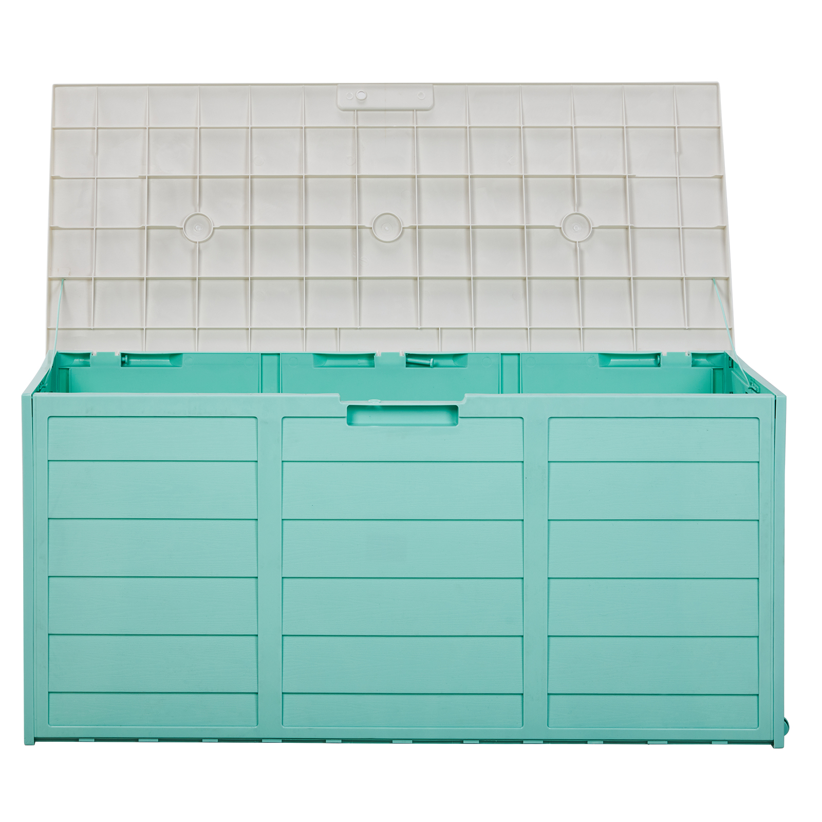 280L Garden Storage Box With Wheels - Formed in hard wearing and durable plastic which is weatherproof, and UV resistant, with a slatted wood-effect finish. Fully sealed design protects against insects and other pests