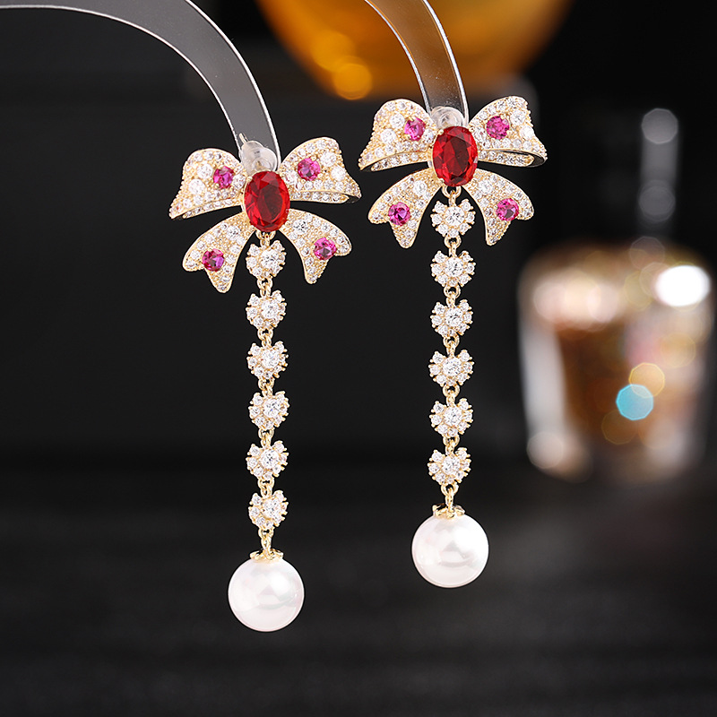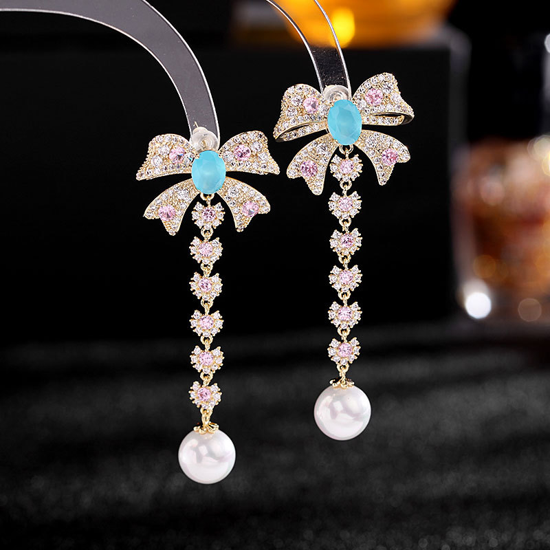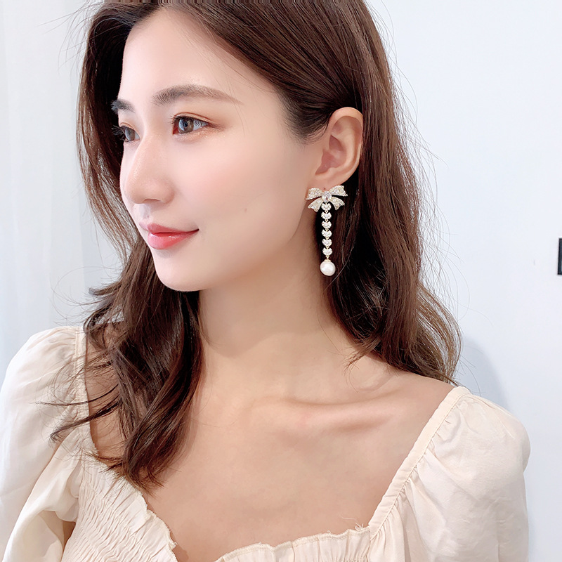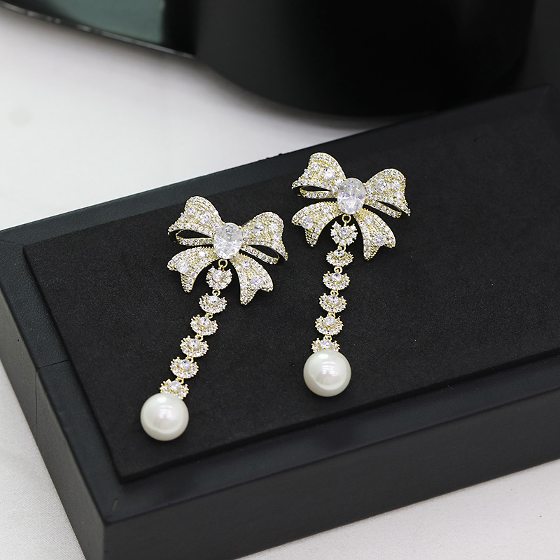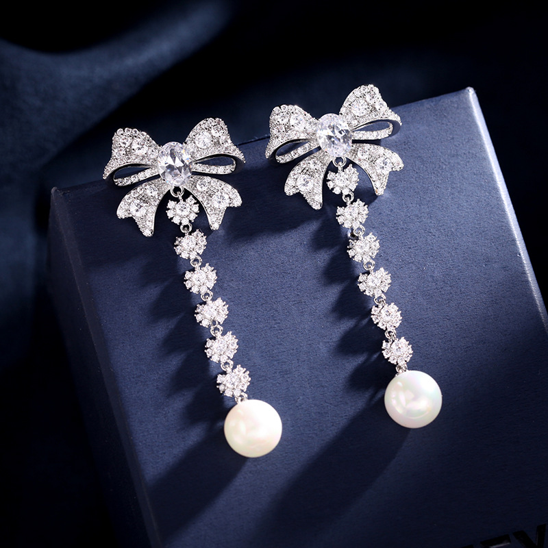 Zircon French Earrings Wholesale Bow Pearl Earrings